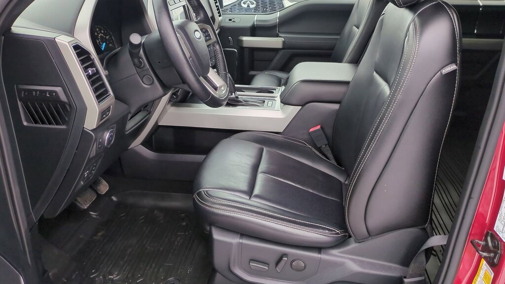 Recent Arrival! Clean CARFAX. 2020 Ford F-150 Lariat Is nicely equipped with Equipment Group 502A Luxury (110V/400W Outlet, 2nd Row Heated Seats, Heated Steering Wheel, Leather-Trimmed Bucket Seats, LED Sideview Mirror Spotlights, Power Glass Sideview Mirr w/Chrome Skull Caps, Power Tilt/Telescoping Steering Column w/Memory, Quad Beam LED Headlamps & LED Taillamps/Fog Lamps, Radio: B&O Sound System by Bang & Olufsen, Rain-Sensing Wipers, Remote Start System w/Remote Tailgate Release, Reverse Sensing System, Universal Garage Door Opener, and Windshield Wiper De-Icer), FX4 Off-Road Package (4x4 FX4 Off-Road Bodyside Decal, Hill Descent Control, Off-Road Tuned Front Shock Absorbers, and Tray Style Floor Liner), Lariat Bed Utility Package, Lariat Chrome Appearance Package, Technology Package (360 Camera w/Split-View Display and Active Park Assist), GVWR: 7,050 lbs Payload Package, 4WD, Twin Panel Moonroof, 18" Machined-Aluminum Wheels, 3.31 Axle Ratio, 4-Wheel Disc Brakes, 7 Speakers, ABS brakes, Adjustable pedals, Air Conditioning, Alloy wheels, AM/FM radio: SiriusXM, Auto High-beam Headlights, Auto-dimming door mirrors, Auto-dimming Rear-View mirror, Automatic temperature control, Brake assist, Bumpers: chrome, Class IV Trailer Hitch Receiver, Compass, Delay-off headlights, Driver door bin, Driver vanity mirror, Dual front impact airbags, Dual front side impact airbags, Electronic Stability Control, Emergency communication system: SYNC 3 911 Assist, Exterior Parking Camera Rear, Front anti-roll bar, Front Center Armrest w/Storage, Front dual zone A/C, Front fog lights, Front reading lights, Front wheel independent suspension, Fully automatic headlights, Heated door mirrors, Heated front seats, Illuminated entry, Leather-Trimmed 40/20/40 Front Seat, Low tire pressure warning, Memory seat, Occupant sensing airbag, Outside temperature display, Overhead airbag, Overhead console, Panic alarm, Passenger door bin, Passenger vanity mirror, Pedal memory, Power door mirrors, Power driver seat, Power passenger seat, Power steering, Power windows, Radio data system, Radio: AM/FM Stereo w/6 Speakers, Rear reading lights, Rear seat center armrest, Rear step bumper, Rear window defroster, Remote keyless entry, Security system, SiriusXM Radio, Speed control, Speed-sensing steering, Split folding rear seat, Steering wheel mounted audio controls, SYNC 3, Tachometer, Telescoping steering wheel, Tilt steering wheel, Traction control, Trip computer, Turn signal indicator mirrors, Variably intermittent wipers, Ventilated front seats, and Voltmeter.
