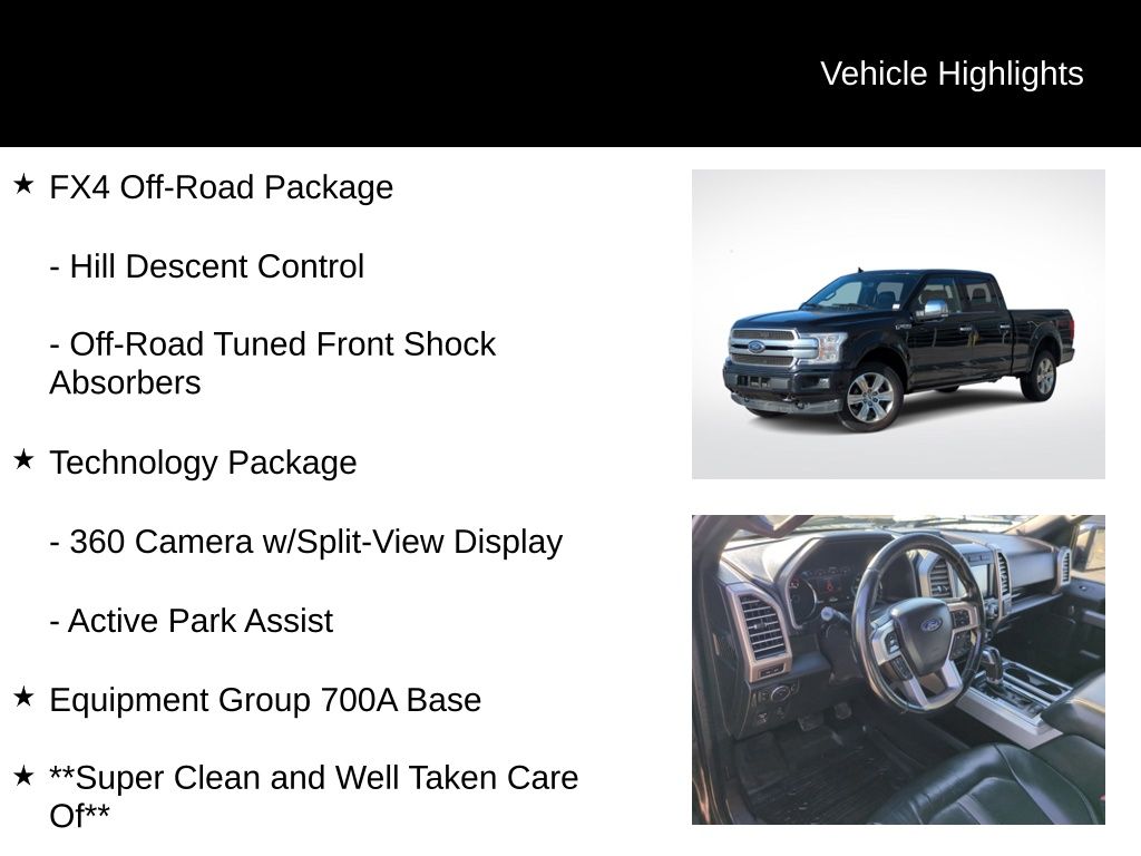 Recent Arrival! Clean CARFAX. 2020 Ford F-150 Platinum Is nicely equipped with Equipment Group 700A Base, FX4 Off-Road Package (4x4 FX4 Off-Road Bodyside Decal, Hill Descent Control, Off-Road Tuned Front Shock Absorbers, and Tray Style Floor Liner), Max Trailer Tow Package (Class IV Trailer Hitch Receiver, Electronic Locking w/3.55 Axle Ratio, Engine Oil Cooler, Extended Range 36 Gallon Fuel Tank, Integrated Trailer Brake Controller, Pro Trailer Backup Assist, and Upgraded Front Stabilizer Bar), Technology Package (360 Camera w/Split-View Display and Active Park Assist), GVWR: 7,050 lbs Payload Package, 4WD, Twin Panel Moonroof, 10 Speakers, 20" Polished Aluminum Wheels, 3.31 Axle Ratio, 4-Wheel Disc Brakes, ABS brakes, Adjustable pedals, Air Conditioning, Alloy wheels, AM/FM radio: SiriusXM, Auto High-beam Headlights, Auto tilt-away steering wheel, Auto-dimming door mirrors, Auto-dimming Rear-View mirror, Automatic temperature control, Black Unique Multi-Contour Leather Bucket Seats, Brake assist, Bumpers: body-color, Compass, Delay-off headlights, Driver door bin, Driver vanity mirror, Dual front impact airbags, Dual front side impact airbags, Electronic Stability Control, Emergency communication system: SYNC 3 911 Assist, Exterior Parking Camera Rear, Front anti-roll bar, Front Bucket Seats, Front Center Armrest, Front dual zone A/C, Front fog lights, Front reading lights, Front wheel independent suspension, Fully automatic headlights, Garage door transmitter, Genuine wood door panel insert, Heated door mirrors, Heated front seats, Heated rear seats, Heated steering wheel, Illuminated entry, Low tire pressure warning, Memory seat, Navigation System, Occupant sensing airbag, Outside temperature display, Overhead airbag, Overhead console, Panic alarm, Passenger door bin, Passenger vanity mirror, Pedal memory, Power door mirrors, Power driver seat, Power passenger seat, Power steering, Power windows, Radio data system, Radio: B&O Sound System by Bang & Olufsen, Rain sensing wipers, Rear Parking Sensors, Rear reading lights, Rear seat center armrest, Rear step bumper, Rear window defroster, Remote keyless entry, Security system, SiriusXM Radio, Speed control, Speed-sensing steering, Split folding rear seat, Steering wheel memory, Steering wheel mounted audio controls, SYNC 3, Tachometer, Telescoping steering wheel, Tilt steering wheel, Traction control, Trip computer, Turn signal indicator mirrors, Variably intermittent wipers, Ventilated front seats, Voice-Activated Touchscreen Navigation, and Voltmeter.