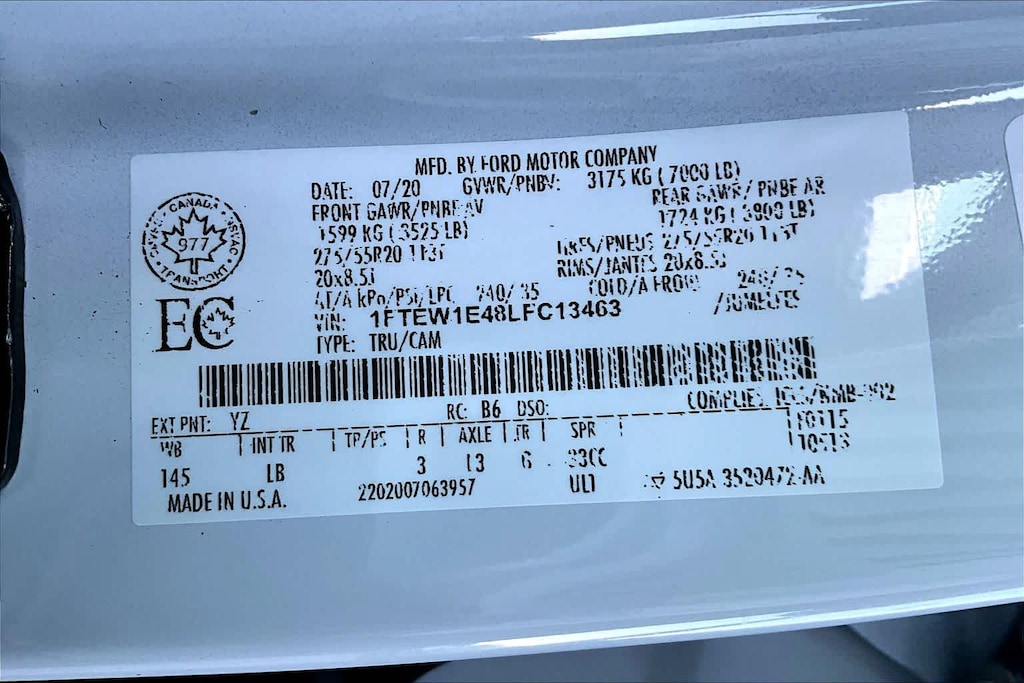 Lithia Chrysler Dodge Jeep Ram of Tri-Cities is pleased to offer this White 2020 Ford F-150 Lariat for purchase, this vehicle is well equipped with many features including:GVWR: 7,050 lbs Payload Package, 4WD, 18 Machined-Aluminum Wheels, 3.31 Axle Ratio, 4-Wheel Disc Brakes, 7 Speakers, ABS brakes, Adjustable pedals, Air Conditioning, Alloy wheels, AM/FM radio: SiriusXM, Auto High-beam Headlights, Auto-dimming door mirrors, Auto-dimming Rear-View mirror, Automatic temperature control, Brake assist, Bumpers: chrome, Class IV Trailer Hitch Receiver, Compass, Delay-off headlights, Driver door bin, Driver vanity mirror, Dual front impact airbags, Dual front side impact airbags, Electronic Stability Control, Emergency communication system: SYNC 3 911 Assist, Exterior Parking Camera Rear, Front anti-roll bar, Front Center Armrest w/Storage, Front dual zone A/C, Front fog lights, Front reading lights, Front wheel independent suspension, Fully automatic headlights, Heated door mirrors, Heated front seats, Illuminated entry, Leather-Trimmed 40/20/40 Front Seat, Low tire pressure warning, Memory seat, Occupant sensing airbag, Outside temperature display, Overhead airbag, Overhead console, Panic alarm, Passenger door bin, Passenger vanity mirror, Pedal memory, Power door mirrors, Power driver seat, Power passenger seat, Power steering, Power windows, Radio data system, Radio: AM/FM Stereo w/6 Speakers, Rear reading lights, Rear seat center armrest, Rear step bumper, Rear window defroster, Remote keyless entry, Security system, SiriusXM Radio, Speed control, Speed-sensing steering, Split folding rear seat, Steering wheel mounted audio controls, SYNC 3, Tachometer, Telescoping steering wheel, Tilt steering wheel, Traction control, Trip computer, Turn signal indicator mirrors, Variably intermittent wipers, Ventilated front seats, and Voltmeter. 2020 Ford F-150 Lariat 4WD.
