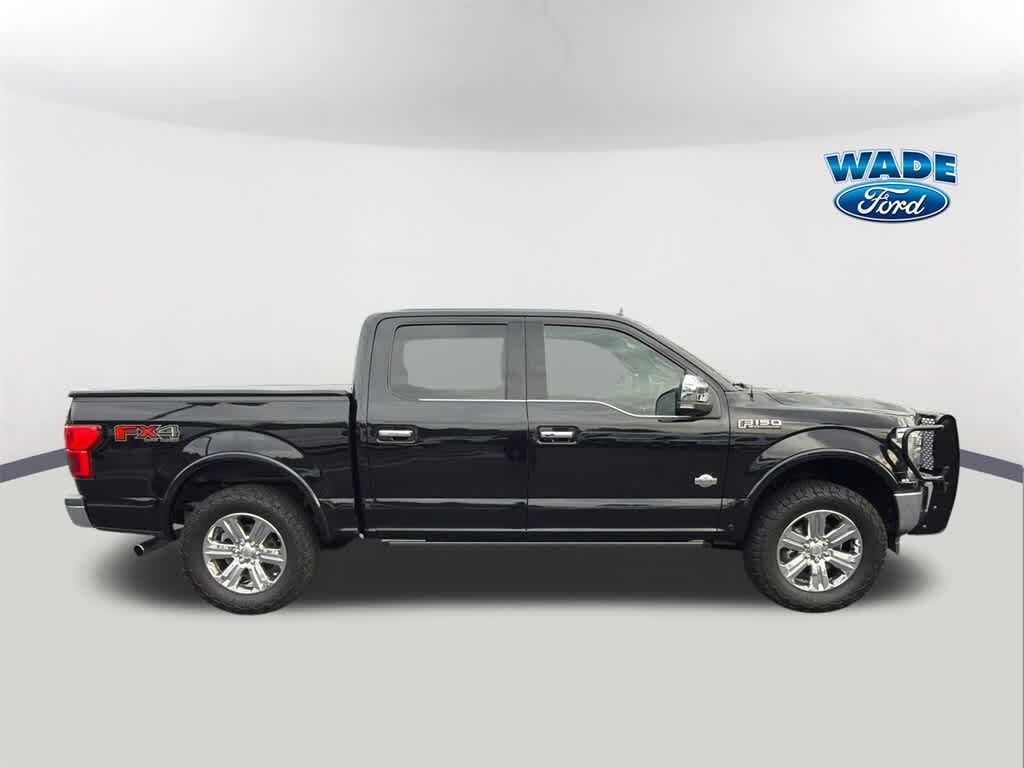 F-150 King Ranch is nicely equipped with Equipment Group 601A Luxury (20 Machined-Aluminum Wheels, Inflatable Rear Safety Belts, Multi-Contour Driver & Passenger Seats, Power-Deployable Running Boards, and Tailgate Step w/Tailgate Lift Assist), FX4 Off-Road Package (4x4 FX4 Off-Road Bodyside Decal, Hill Descent Control, Off-Road Tuned Front Shock Absorbers, and Tray Style Floor Liner), GVWR: 7,050 lbs Payload Package, King Ranch Chrome Appearance Package (Bright Belt Moldings, Chrome Door Handles w/Body-Color Strap, Chrome Skull Caps on Exterior Mirrors, Front & Rear Chrome Bumpers, and Wheels: 20 Chrome-Like PVD), King Ranch Monochromatic Paint Package (Painted Body-Color Wheellip Molding), Max Trailer Tow Package (Class IV Trailer Hitch Receiver, Engine Oil Cooler, Extended Range 36 Gallon Fuel Tank, Integrated Trailer Brake Controller, Pro Trailer Backup Assist, and Upgraded Front Stabilizer Bar), Technology Package (360 Camera w/Split-View Display and Active Park Assist), 4WD, 10 Speakers, 18 Machined-Aluminum Wheels, 4-Wheel Disc Brakes, ABS brakes, Adaptive Cruise Control, Adjustable pedals, Air Conditioning, Alloy wheels, AM/FM radio: SiriusXM, Auto High-beam Headlights, Auto tilt-away steering wheel, Auto-dimming door mirrors, Auto-dimming Rear-View mirror, Automatic temperature control, Brake assist, Compass, Delay-off headlights, Driver door bin, Driver vanity mirror, Dual front impact airbags, Dual front side impact airbags, Electronic Stability Control, Emergency communication system: SYNC 3 911 Assist, Exterior Parking Camera Rear, Front anti-roll bar, Front Bucket Seats, Front Center Armrest, Front dual zone A/C, Front fog lights, Front License Plate Bracket, Front reading lights, Front wheel independent suspension, Fully automatic headlights, Garage door transmitter, Genuine wood dashboard insert, Genuine wood door panel insert, Heated door mirrors, Heated front seats, Heated rear seats, Heated steering wheel, Illuminated entry, King Ranch Leather Bucket Seats, LED Sideview Mirror Spotlights, Low tire pressure warning, Memory seat, Navigation System, Occupant sensing airbag, Outside temperature display, Overhead airbag, Overhead console, Panic alarm, Passenger door bin, Passenger vanity mirror, Pedal memory, Power door mirrors, Power driver seat, Power passenger seat, Power steering, Power windows, Radio data system, Radio: B&O Sound System by Bang & Olufsen, Rain sensing wipers, Rear Parking Sensors, Rear reading lights, Rear seat center armrest, Rear step bumper, Rear window defroster, Remote keyless entry, Security system, SiriusXM Radio, Speed control, Speed-sensing steering, Split folding rear seat, Steering wheel memory, Steering wheel mounted audio controls, SYNC 3, Tachometer, Telescoping steering wheel, Tilt steering wheel, Tough Bed Spray-In Bedliner, Traction control, Trip computer, Turn signal indicator mirrors, Twin Panel Moonroof, Variably intermittent wipers, Ventilated front seats, Voice-Activated Touchscreen Navigation, and Voltmeter.