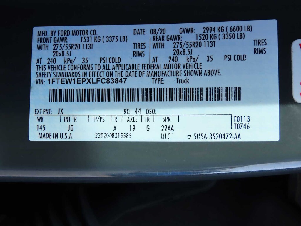 EQUIPMENT GROUP 101A MID XL Power Equipment Group, Power Door Locks, flip key and integrated key transmitter keyless-entry (includes Autolock), MyKey, Power Glass Sideview Mirrors w/Black Skull Caps, manual-folding, Power Front & Rear Windows, Power Tailgate Lock, Illuminated Entry, Perimeter Alarm, 4.2 Productivity Screen in Instrument Cluster, compass, FordPass Connect (4G), 4G LTE Wi-Fi hotspot connects up to 10 devices, remotely start, lock and unlock vehicle, schedule specific times to remotely start vehicle, locate parked vehicle and check vehicle status, Note: Ford Telematics and Data Services Prep included for Fleet ONLY: FordPass Connect 4G Wi-Fi Modem provides data to support telematics and data services including but not limited to vehicle location, speed, idle time, fuel, STX APPEARANCE PACKAGE Box Side Decals, Fog Lamps, Tires: P275/55R20 BSW AT, 265/70R17 BSW all-terrain spare tire, SYNC 3, enhanced voice recognition communications and entertainment system, 8 LCD touchscreen in center stack w/swipe capability, AppLink, 911 Assist, Apple CarPlay® and Android Auto® compatibility and 2 smart charging USB ports, Wheels: 20 Machined-Aluminum, flash gray painted pockets, Body-Color Surround w/Black Mesh Insert Grille, black mesh insert, Manual Driver/Passenger Lumbar, Rear Window Fixed Privacy Glass, Driver/Passenger Seat Back Pocket, Body-Color Front & Rear Bumpers, body-color front fascia, Rear Window Defroster, ENGINE: 2.7L V6 ECOBOOST auto start-stop technology, 3.55 Axle Ratio, GVWR: 6,600 lbs Payload Package, BLACK PLATFORM RUNNING BOARDS, TRANSMISSION: ELECTRONIC 10-SPEED AUTOMATIC selectable drive modes: normal/tow-haul/snow-wet/EcoSelect/sport. 4x4, Chrome Wheels, Child Safety Locks, Electronic Stability Control, Brake Assist, 4-Wheel ABS, 4-Wheel Disc Brakes.