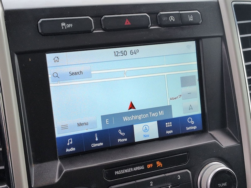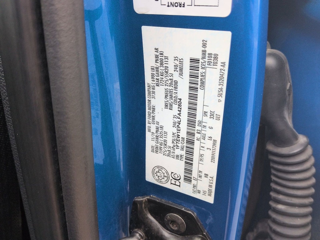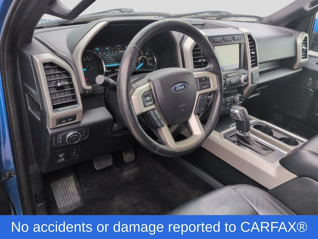 Clean CARFAX. 2020 Ford F-150 Lariat Is nicely equipped with Equipment Group 502A Luxury (110V/400W Outlet, 2nd Row Heated Seats, Heated Steering Wheel, Leather-Trimmed Bucket Seats, LED Sideview Mirror Spotlights, Power Glass Sideview Mirr w/Chrome Skull Caps, Power Tilt/Telescoping Steering Column w/Memory, Quad Beam LED Headlamps & LED Taillamps/Fog Lamps, Radio: B&O Sound System by Bang & Olufsen, Rain-Sensing Wipers, Remote Start System w/Remote Tailgate Release, Reverse Sensing System, Universal Garage Door Opener, and Windshield Wiper De-Icer), GVWR: 6,600 lbs Payload Package, Lariat Bed Utility Package, Lariat Sport Appearance Package (2-Bar Body-Color Grille w/4 Minor Bars, Accent-Color Angular Step Bars, Body-Color Front & Rear Bumpers, Box Side Decals, Single-Tip Chrome Exhaust, and Wheels: 18" 6-Spoke Machined-Aluminum), 4WD, 18" Machined-Aluminum Wheels, 3.55 Axle Ratio, 4-Wheel Disc Brakes, 7 Speakers, ABS brakes, Adjustable pedals, Air Conditioning, Alloy wheels, AM/FM radio: SiriusXM, Auto High-beam Headlights, Auto-dimming door mirrors, Auto-dimming Rear-View mirror, Automatic temperature control, Brake assist, Bumpers: chrome, Class IV Trailer Hitch Receiver, Compass, Delay-off headlights, Driver door bin, Driver vanity mirror, Dual front impact airbags, Dual front side impact airbags, Electronic Stability Control, Emergency communication system: SYNC 3 911 Assist, Exterior Parking Camera Rear, Front anti-roll bar, Front Center Armrest w/Storage, Front dual zone A/C, Front fog lights, Front reading lights, Front wheel independent suspension, Fully automatic headlights, Heated door mirrors, Heated front seats, Illuminated entry, Leather-Trimmed 40/20/40 Front Seat, Low tire pressure warning, Memory seat, Occupant sensing airbag, Outside temperature display, Overhead airbag, Overhead console, Panic alarm, Passenger door bin, Passenger vanity mirror, Pedal memory, Power door mirrors, Power driver seat, Power passenger seat, Power steering, Power windows, Radio data system, Radio: AM/FM Stereo w/6 Speakers, Rear reading lights, Rear seat center armrest, Rear step bumper, Rear window defroster, Remote keyless entry, Security system, SiriusXM Radio, Speed control, Speed-sensing steering, Split folding rear seat, Steering wheel mounted audio controls, SYNC 3, Tachometer, Telescoping steering wheel, Tilt steering wheel, Traction control, Trip computer, Turn signal indicator mirrors, Variably intermittent wipers, Ventilated front seats, and Voltmeter.