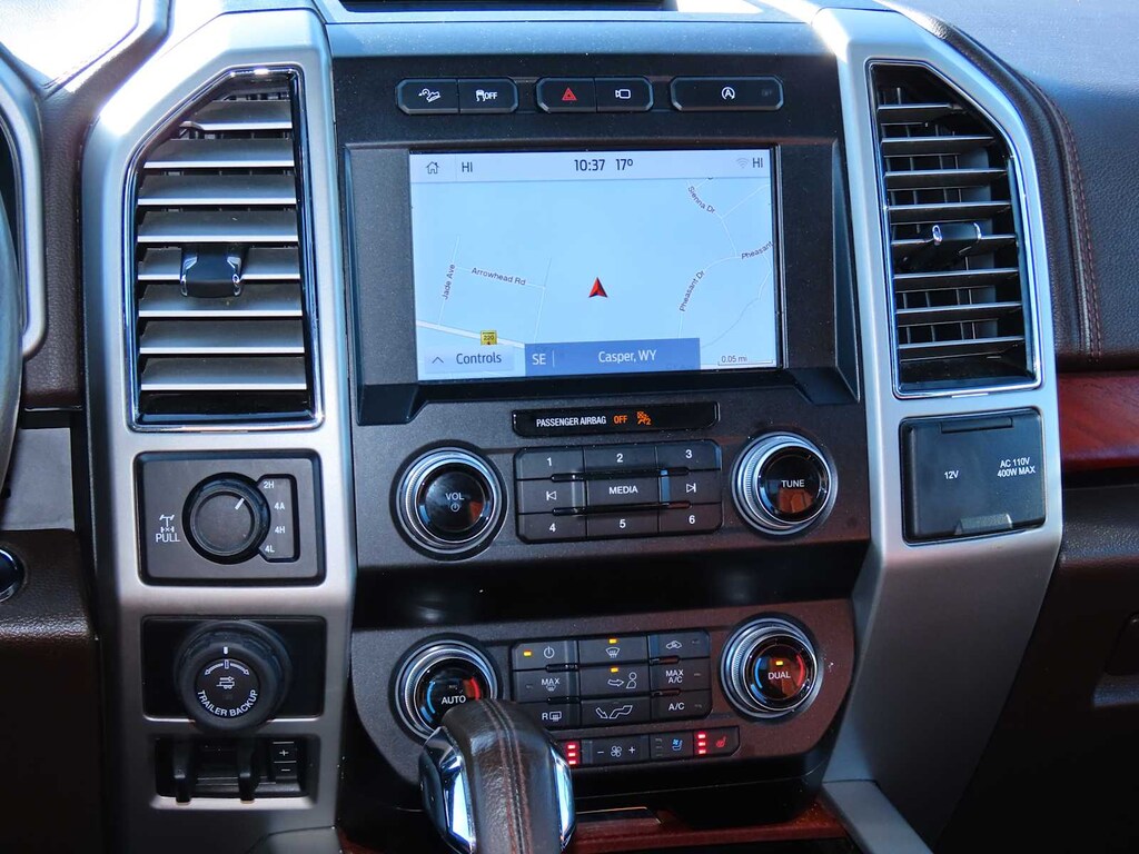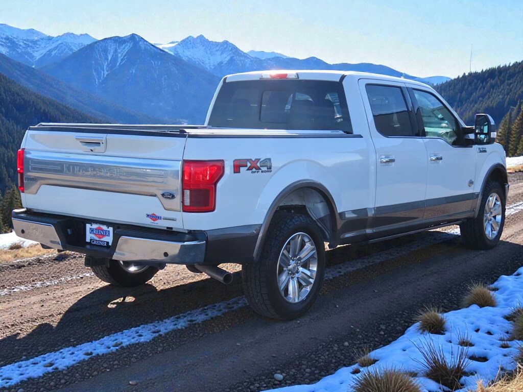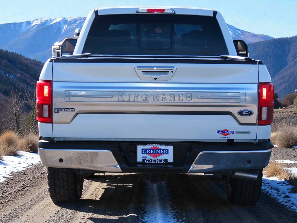 EQUIPMENT GROUP 601A LUXURY Tailgate Step w/Tailgate Lift Assist, Tires: P275/55R20 OWL Automatic Transmission, 275/65R18 OWL all-terrain spare tire, Power-Deployable Running Boards, Replaces step bar, Wheels: 20 Machined-Aluminum, light Caribou painted pockets and Caribou wheel ornament w/Caribou King Ranch logo, Inflatable Rear Safety Belts, Multi-Contour Driver & Passenger Seats, Active Motion, KING RANCH CHROME APPEARANCE PACKAGE 2 chrome front tow hooks and tailgate applique, Chrome Door Handles w/Body-Color Strap, Front & Rear Chrome Bumpers, Bright Belt Moldings, Tires: P275/55R20 OWL Automatic Transmission, 275/65R18 OWL all-terrain spare tire, Wheels: 20 Chrome-Like PVD, Caribou wheel ornaments w/King Ranch logo, Chrome Skull Caps on Exterior Mirrors, TWIN PANEL MOONROOF, MAX TRAILER TOW PACKAGE max towing capability up to 13,200 lbs, and upgraded rear bumper, Pro Trailer Backup Assist, Integrated Trailer Brake Controller, Electronic Locking w/3.55 Axle Ratio, Extended Range 36 Gallon Fuel Tank, Engine Oil Cooler, Upgraded Front Stabilizer Bar, ADAPTIVE CRUISE CONTROL stop-and-go and pedestrian detection, TECHNOLOGY PACKAGE 360 Camera w/Split-View Display, dynamic hitch assist, Active Park Assist, FX4 OFF-ROAD PACKAGE Off-Road Tuned Front Shock Absorbers, Skid Plates, fuel tank, transfer case and front differential, 4x4 FX4 Off-Road Bodyside Decal, Hill Descent Control, Electronic Locking w/3.31 Axle Ratio, Tray Style Floor Liner, ENGINE: 3.5L V6 ECOBOOST auto start-stop technology, TELESCOPING POWER GLASS TRAILER TOW MIRRORS W/HEAT power-folding, PowerScope, turn signal, memory, auto-dimming feature (drivers side) and chrome skull caps, LED Sideview Mirror Spotlights, high-intensity LED security approach lamps, TRANSMISSION: ELECTRONIC 10-SPEED AUTOMATIC selectable drive modes: normal/tow-haul/snow-wet/EcoSelect/sport (STD). MP3 Player, 4x4, Onboard Communications System, Privacy Glass, Keyless Entry, Child Safety Locks, Steering Wheel Controls.
