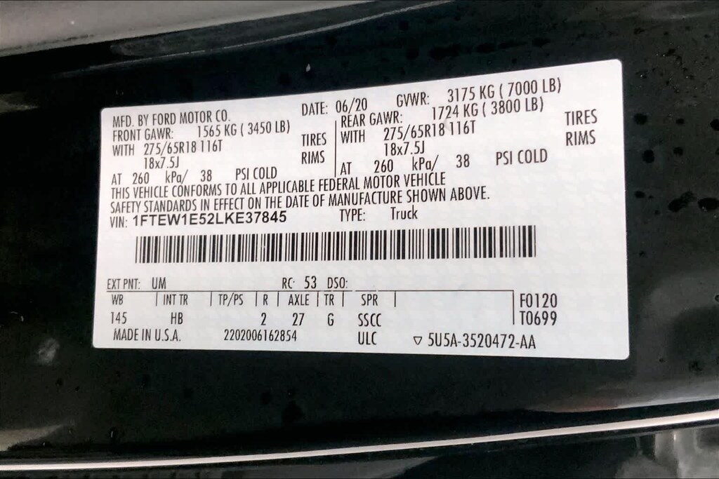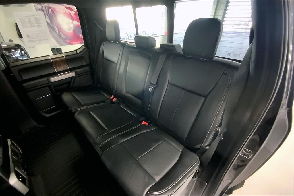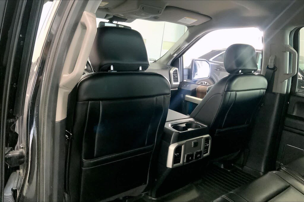 F-150 Lariat is nicely equipped with Equipment Group 501A Mid (110V/400W Outlet, Power Glass Sideview Mirr w/Body-Color Skull Caps, Remote Start System w/Remote Tailgate Release, and Reverse Sensing System), GVWR: 7,050 lbs Payload Package, Lariat Chrome Appearance Package (Chrome 2-Bar Grille w/4 Minor Bars, Chrome Angular Step Bars, Chrome Door & Tailgate Handles w/Body-Color Bezel, Chrome Skull Caps on Exterior Mirrors, Single-Tip Chrome Exhaust, and Wheels: 18 Chrome-Like PVD), 4WD, 18 Machined-Aluminum Wheels, 3.31 Axle Ratio, 4-Wheel Disc Brakes, 7 Speakers, ABS brakes, Adjustable pedals, Air Conditioning, Alloy wheels, AM/FM radio: SiriusXM, Auto High-beam Headlights, Auto-dimming door mirrors, Auto-dimming Rear-View mirror, Automatic temperature control, Brake assist, Bumpers: chrome, Class IV Trailer Hitch Receiver, Compass, Delay-off headlights, Driver door bin, Driver vanity mirror, Dual front impact airbags, Dual front side impact airbags, Electronic Stability Control, Emergency communication system: SYNC 3 911 Assist, Exterior Parking Camera Rear, Front anti-roll bar, Front Center Armrest w/Storage, Front dual zone A/C, Front fog lights, Front reading lights, Front wheel independent suspension, Fully automatic headlights, Heated door mirrors, Heated front seats, Illuminated entry, Leather-Trimmed 40/20/40 Front Seat, Low tire pressure warning, Memory seat, Occupant sensing airbag, Outside temperature display, Overhead airbag, Overhead console, Panic alarm, Passenger door bin, Passenger vanity mirror, Pedal memory, Power door mirrors, Power driver seat, Power passenger seat, Power steering, Power windows, Radio data system, Radio: AM/FM Stereo w/6 Speakers, Rear reading lights, Rear seat center armrest, Rear step bumper, Rear window defroster, Remote keyless entry, Security system, SiriusXM Radio, Speed control, Speed-sensing steering, Split folding rear seat, Steering wheel mounted audio controls, SYNC 3, Tachometer, Telescoping steering wheel, Tilt steering wheel, Traction control, Trip computer, Turn signal indicator mirrors, Variably intermittent wipers, Ventilated front seats, and Voltmeter.