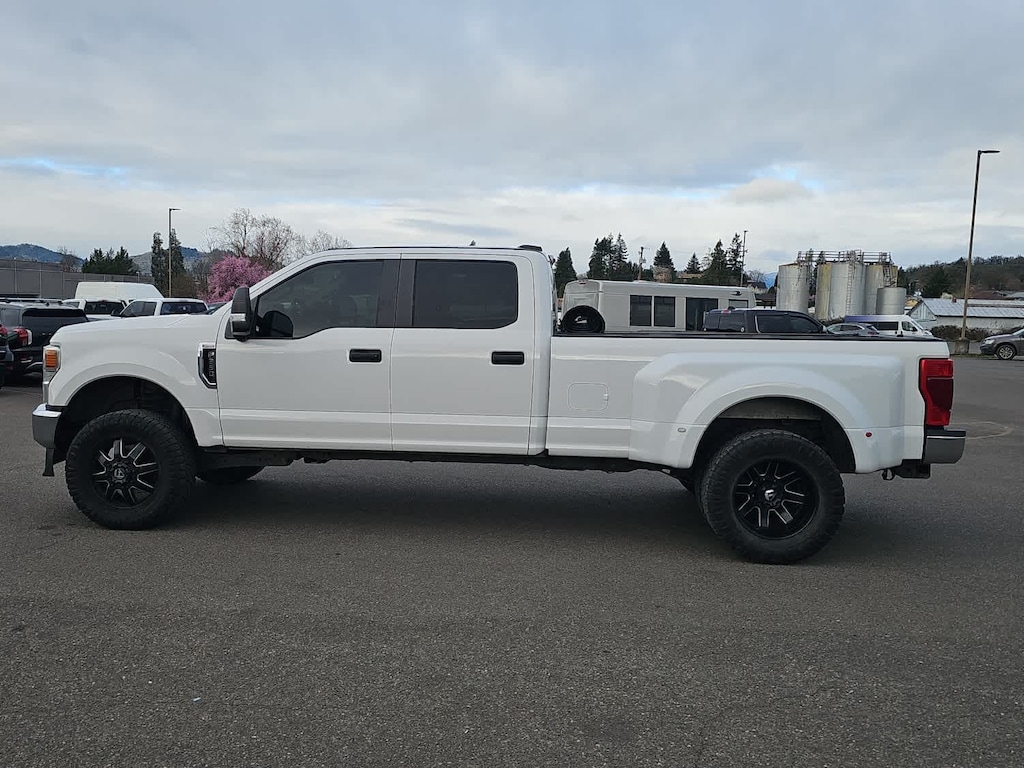 STX fender vent badge, Bright Hub Covers, Chrome Front Bumper, Chrome Rear Step Bumper, Steering Wheel-Mounted Cruise Control, Wheels: 17 Forged Polished Aluminum, bright hub covers/center ornaments (4 aluminum outer and 2 steel inner), Ultimate Trailer Tow Camera System, rear view camera, 360 degree camera system, rear CHMSL camera, trailer reverse guidance and LED center high-mounted stop lamp, Deletes passenger-side lock cylinder, upgraded door trim panel, Accessory Delay, Advanced Security Pack, SecuriLock Passive Anti-Theft System (PATS) and inclination/intrusion sensors, Power Locks, Remote Keyless Entry, Trailer Tow Mirrors w/Power Heated Glass, power heated glass, heated convex spotter mirror and integrated clearance lights and turn signal indicators, Power Front & Rear Seat Windows, 1-touch up/down driver/passenger window, Power Tailgate Lock, 6 ANGULAR CHROME STEP BAR, cross-traffic alert and trailer tow (BLIS sensor in taillamp), enhanced voice recognition, 8 LCD capacitive touch screen in center stack w/swipe capability, pinch-to-zoom capability included w/available voice-activated touchscreen navigation system, 4.2 productivity screen in IP cluster, AppLink, 911 Assist, Apple CarPlay® and Android Auto® capability and 2 smart charging USB-C ports, 110V/400W Outlet, 1 in-dash mounted outlet, TAILGATE STEP & HANDLE, LIMITED SLIP W/3.55 AXLE RATIO, SPARE TIRE, WHEEL, CARRIER & JACK, a and 1 I/P mounted center speaker, Service is not available in Alaska and Hawaii, SiriusXM audio and data services each require a subscription sold separately, or as a package, by SiriusXM Radio Inc, If you decide to continue service after your trial, the subscription plan you choose will automatically renew thereafter and you will be charged according to your chosen payment method at then-current rates, Fees and taxes apply, To cancel you must call SiriusXM at 1-866-635-2349, See SiriusXM Customer Agreement for complete terms at www.siriusxm.com, All fees and programming subject to change, SiriusXM and all related marks and logos are trademarks of SiriusXM Radio Inc, COLOR-COORDINATED FULL CARPET W/FLOOR MATS, FIXED REAR-WINDOW W/DEFROST, SelectShift and selectable drive modes: normal, tow/haul, eco, deep sand/snow and slippery (STD). 2020 Ford Super Duty F-350 DRW Pickup with Oxford White exterior and Medium Earth Gray interior features a 8 Cylinder Engine with 385 HP at 5750 RPM*. Non-Smoker vehicle