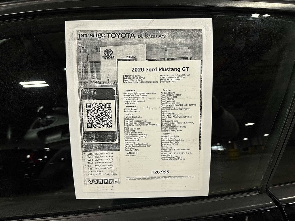 This 2020 Ford Mustang GT will not make it to the weekend!! CALL NOW to reserve your test drive!! (844) 838-7075 Please Visit www.PrestigeToyota.com for further details. Price does not include licensing costs, registration fees, taxes and dealer doc fee of $999 which are to be paid by the consumer.