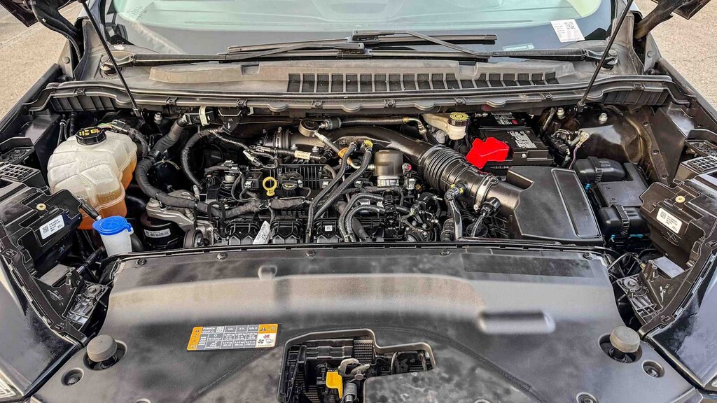Cargo Accessory Package (Cargo Mat, Rear Bumper Protector, and Retractable Cargo Area Cover), Convenience Package (110V/150W AC Power Outlet, Perimeter Alarm, Power Liftgate, Remote Start System, Universal Garage Door Opener (UGDO), and Wireless Charging Pad), Equipment Group 201A, Ford Co-Pilot360 Assist+ (Adaptive Cruise Control w/Stop & Go, Connected Built-In Navigation, Evasive Steering Assist, and Lane Centering), 3.80 Axle Ratio, 4-Wheel Disc Brakes, 6 Speakers, ABS brakes, ActiveX Seating Material Heated Bucket Seats, Air Conditioning, Alloy wheels, AM/FM radio: SiriusXM with 360L, Auto High-beam Headlights, Auto-dimming Rear-View mirror, Automatic temperature control, Brake assist, Bumpers: body-color, Cargo Net, Compass, Delay-off headlights, Driver door bin, Driver vanity mirror, Dual front impact airbags, Dual front side impact airbags, Electronic Stability Control, Emergency communication system: SYNC 4 911 Assist, FordPass Connect, Four wheel independent suspension, Front & Rear Floor Liners w/o Carpet Mats, Front anti-roll bar, Front Bucket Seats, Front Center Armrest w/Storage, Front dual zone A/C, Front fog lights, Front License Plate Bracket, Front reading lights, Fully automatic headlights, Heated door mirrors, Heated front seats, Heated Steering Wheel, Illuminated entry, Knee airbag, Low tire pressure warning, Occupant sensing airbag, Outside temperature display, Overhead airbag, Overhead console, Panic alarm, Passenger door bin, Passenger vanity mirror, Power door mirrors, Power driver seat, Power passenger seat, Power steering, Power windows, Radio: AM/FM Stereo/MP3 Capable, Rear anti-roll bar, Rear reading lights, Rear seat center armrest, Rear window defroster, Rear window wiper, Remote keyless entry, Silver Roof-Rack Side Rails, SiriusXM w/360L, Speed control, Speed-Sensitive Wipers, Split folding rear seat, Spoiler, Steering wheel mounted audio controls, SYNC 4A w/Enhanced Voice Recognition, Tachometer, Telescoping steering wheel, Tilt steering wheel, Traction control, Trip computer, Variably intermittent wipers, Wheels: 18 Bright-Machined Aluminum, and Wheels: 18 Sparkle Silver-Painted Aluminum. EcoBoost 2.0L I4 GTDi DOHC Turbocharged VCT 8-Speed Automatic FWD