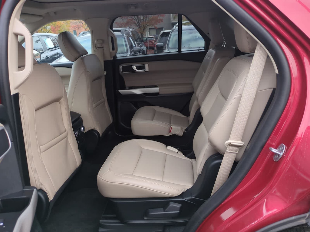 CARFAX One-Owner. Red Metallic 2021 Ford Explorer XLT 4WD 10-Speed Automatic 2.3L EcoBoost I-4 4WD, 1st Row Heated Seats, 3.58 Non-Limited-Slip Rear Axle Ratio, 3rd row seats: bench, 4-Wheel Disc Brakes, 6 Speakers, ABS brakes, Acoustic-Laminated Front Side Windows, ActiveX Captains Chairs, Air Conditioning, Alloy wheels, AM/FM radio: SiriusXM, AM/FM Stereo, Auto High-beam Headlights, Automatic temperature control, Brake assist, Bumpers: body-color, Compass, Delay-off headlights, Driver door bin, Driver vanity mirror, Dual front impact airbags, Dual front side impact airbags, Electronic Stability Control, Emergency communication system: SYNC 3 911 Assist, Equipment Group 202A, Exterior Parking Camera Rear, FordPass Connect, Four wheel independent suspension, Front anti-roll bar, Front Bucket Seats, Front Center Armrest, Front dual zone A/C, Front License Plate Bracket, Front reading lights, Fully automatic headlights, Heated door mirrors, Heated front seats, Heated Steering Wheel, Illuminated entry, Knee airbag, Leather steering wheel, LED Fog Lamps, Low tire pressure warning, Occupant sensing airbag, Outside temperature display, Overhead airbag, Overhead console, Panic alarm, Passenger door bin, Passenger vanity mirror, Power door mirrors, Power driver seat, Power Liftgate, Power passenger seat, Power steering, Power windows, Rear air conditioning, Rear anti-roll bar, Rear reading lights, Rear window defroster, Rear window wiper, Remote keyless entry, Remote Start System, Roof rack: rails only, Security system, Speed control, Speed-sensing steering, Speed-Sensitive Wipers, Split folding rear seat, Spoiler, Steering wheel mounted audio controls, SYNC 3 Communications & Entertainment System, SYNC 3/Apple CarPlay/Android Auto, Tachometer, Telescoping steering wheel, Tilt steering wheel, Traction control, Trip computer, Twin Panel Moonroof, Unique Cloth Captains Chairs, Variably intermittent wipers, Wheels: 18 5-Spoke Sparkle Silver-Painted Alum, 4WD.