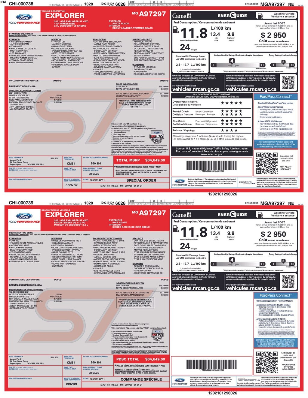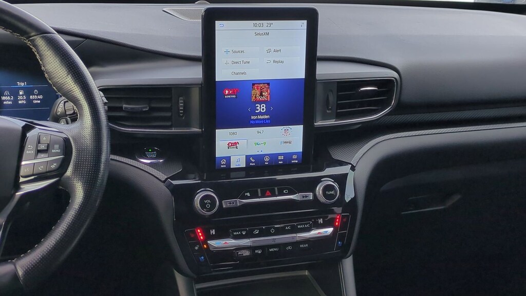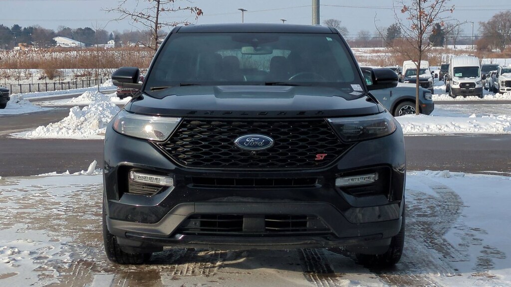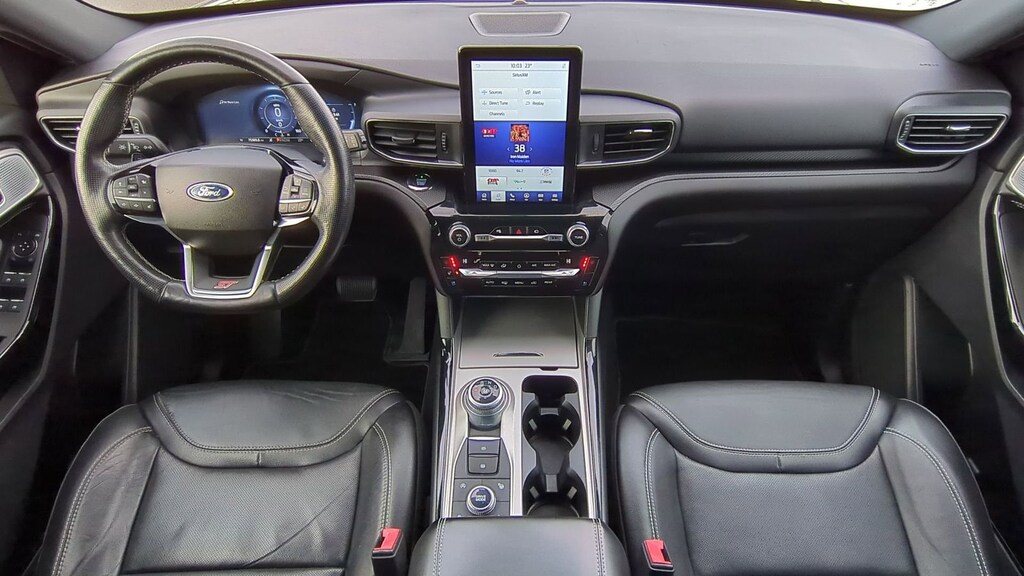 Clean CARFAX. 2021 Ford Explorer ST Is nicely equipped with Equipment Group 401A, Premium Technology Package (10.1" LCD Capacitive Portrait Touchscreen, 2 Additional Speakers, and Leather Htd/Ventilated Sport Captain's Chairs), ST High Package (FordPass Connect and SYNC 3 Communications & Entertainment System), ST Street Pack, 4WD, Twin Panel Moonroof, 20" Machined Aluminum w/Painted Pockets Wheels, 3.58 Non-Limited-Slip Rear Axle Ratio, 3rd row seats: bench, 4-Wheel Disc Brakes, 6 Speakers, ABS brakes, Air Conditioning, Alloy wheels, AM/FM radio: SiriusXM, AM/FM Stereo, Auto High-beam Headlights, Automatic temperature control, Brake assist, Bumpers: body-color, Compass, Delay-off headlights, Driver door bin, Driver vanity mirror, Dual front impact airbags, Dual front side impact airbags, Electronic Stability Control, Emergency communication system: SYNC 3 911 Assist, Exterior Parking Camera Rear, Four wheel independent suspension, Front anti-roll bar, Front Bucket Seats, Front Center Armrest, Front dual zone A/C, Front fog lights, Front reading lights, Fully automatic headlights, Heated door mirrors, Heated front seats, Heated steering wheel, Illuminated entry, Knee airbag, Leather steering wheel, Low tire pressure warning, Occupant sensing airbag, Outside temperature display, Overhead airbag, Overhead console, Panic alarm, Passenger door bin, Passenger vanity mirror, Power door mirrors, Power driver seat, Power Liftgate, Power passenger seat, Power steering, Power windows, Rear air conditioning, Rear anti-roll bar, Rear reading lights, Rear window defroster, Rear window wiper, Remote keyless entry, Security system, SelectShift Capability w/Paddle Shifters, Speed control, Speed-sensing steering, Speed-Sensitive Wipers, Split folding rear seat, Spoiler, Sport steering wheel, Steering wheel mounted audio controls, SYNC 3/Apple CarPlay/Android Auto, Tachometer, Telescoping steering wheel, Tilt steering wheel, Traction control, Trip computer, and Variably intermittent wipers.