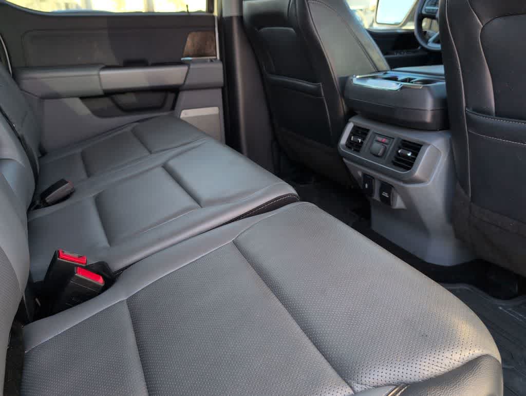 This F-150 Lariat is nicely equipped with Equipment Group 502A High (Onboard 400W Outlet and Radio: B&O Sound System by Bang & Olufsen), Ford Co-Pilot360 Assist 2.0 (Connected Built-In Navigation, Evasive Steering Assist, Intelligent Adaptive Cruise Control w/Stop & Go, Intersection Assist, and Speed Sign Recognition), FX4 Off-Road Package, Lariat Chrome Appearance Package (6 Chrome Running Board, Chrome 2-Bar Grille w/4 Minor Bars, Chrome Door & Tailgate Handles w/Body-Color Bezel, Chrome Single-Tip Exhaust, Chrome Skull Caps on Exterior Mirrors, and Wheels: 18 Chrome-Like PVD), Trailer Tow Package (Class IV Trailer Hitch Receiver, Integrated Trailer Brake Controller, and Pro Trailer Backup Assist), 4WD, 18 Machined-Aluminum Wheels, 4-Wheel Disc Brakes, 7 Speakers, ABS brakes, Adjustable pedals, Air Conditioning, Alloy wheels, AM/FM radio: SiriusXM with 360L, Auto High-beam Headlights, Auto-dimming door mirrors, Auto-dimming Rear-View mirror, Automatic temperature control, Brake assist, Bumpers: chrome, Compass, Delay-off headlights, Driver door bin, Driver vanity mirror, Dual front impact airbags, Dual front side impact airbags, Electronic Stability Control, Emergency communication system: SYNC 4 911 Assist, Extended Range 36 Gallon Fuel Tank, Exterior Parking Camera Rear, Front anti-roll bar, Front Center Armrest w/Storage, Front dual zone A/C, Front fog lights, Front reading lights, Front wheel independent suspension, Fully automatic headlights, Heated door mirrors, Heated front seats, Illuminated entry, Leather-Trimmed 40/20/40 Front Seat, LED Sideview Mirror Spotlights, Low tire pressure warning, Memory seat, Navigation system: Connected Navigation (90-Day Trial), Occupant sensing airbag, Outside temperature display, Overhead airbag, Overhead console, Panic alarm, Passenger door bin, Passenger vanity mirror, Pedal memory, Power door mirrors, Power driver seat, Power passenger seat, Power steering, Power windows, Power-Deployable Running Boards, Radio data system, Radio: AM/FM SiriusXM w/360L, Rear reading lights, Rear seat center armrest, Rear step bumper, Rear window defroster, Remote keyless entry, Security system, Speed control, Speed-sensing steering, Split folding rear seat, Steering wheel mounted audio controls, SYNC 4 w/Enhanced Voice Recognition, Tachometer, Telescoping steering wheel, Tilt steering wheel, Tough Bed Spray-In Bedliner, Traction control, Tray Style Floor Liner (47W), Trip computer, Turn signal indicator mirrors, Variably intermittent wipers, Ventilated front seats, Voltmeter, and Wheels: 20 Chrome-Like PVD. Price does not include licensing costs, registration fees, taxes and dealer doc fee of $899.50 which are to be paid by the consumer.