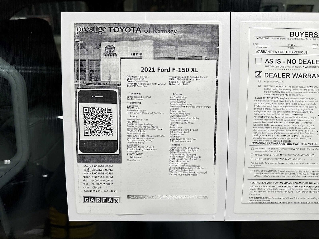 This 2021 Ford F-150 XL will not make it to the weekend!! CALL NOW to reserve your test drive!! (844) 838-7075 Please Visit www.PrestigeToyota.com for further details. Price does not include licensing costs, registration fees, taxes and dealer doc fee of $999 which are to be paid by the consumer.