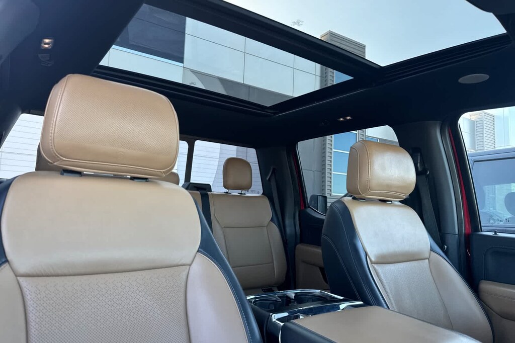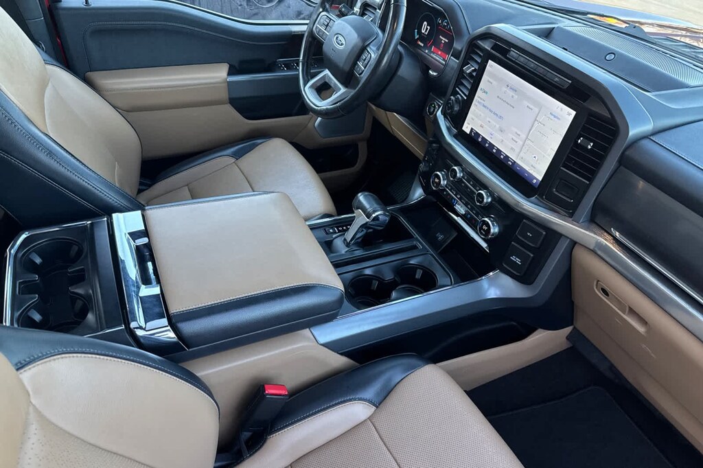 Leather Seats, Navigation, 4x4, Heated Driver Seat, Cooled Driver Seat, Back-Up Camera, Turbocharged, Satellite Radio, iPod/MP3 Input, Onboard Communications System, Trailer Hitch, Aluminum Wheels, Remote Engine Start, Dual Zone A/C, Lane Keeping Assist MP3 Player, Privacy Glass, Keyless Entry, Steering Wheel Controls, Child Safety Locks. 2021 Ford F-150 with Rapid Red Metallic Tinted Clearcoat exterior and Baja Tan interior features a V6 Cylinder Engine with 325 HP at 5000 RPM*.