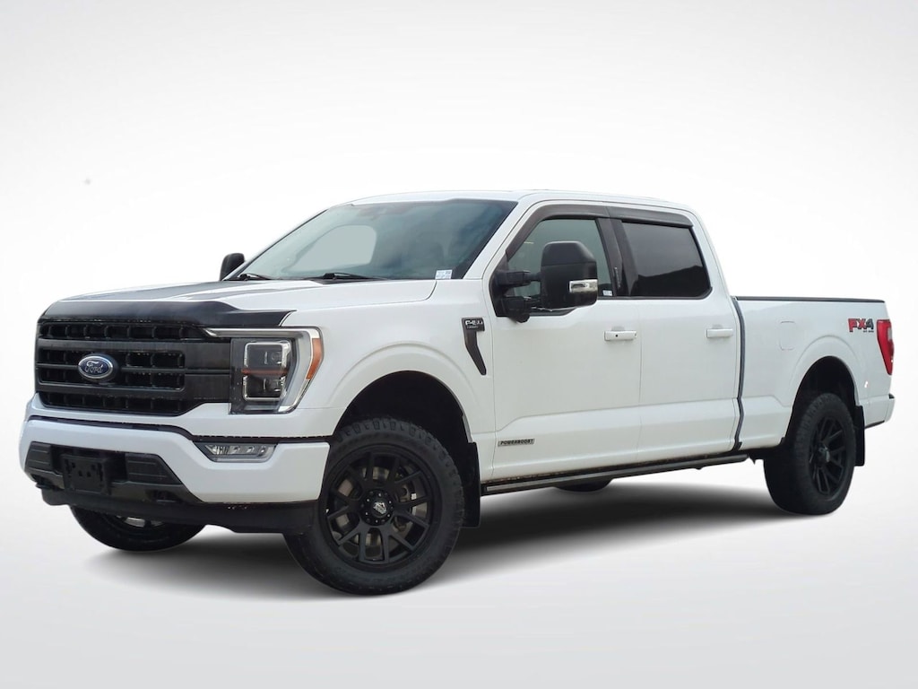 Clean CARFAX. 2021 Ford F-150 Lariat Is nicely equipped with Equipment Group 502A High (2nd Row Heated Seats, Heated Steering Wheel, Leather-Trimmed Bucket Seats, LED Projector w/Dynamic Bending Headlamps, Onboard 400W Outlet, Power Glass Sideview Mirr w/Chrome Skull Caps, Power Tilt/Telescoping Steering Column w/Memory, Radio: B&O Sound System by Bang & Olufsen, Rain-Sensing Wipers, and Universal Garage Door Opener), Ford Co-Pilot360 Assist 2.0, Lariat Sport Appearance Package (Accent-Color Angular Step Bars, Body-Color Front & Rear Bumpers, Box Side Decals, Chrome Single-Tip Exhaust, Dark 2-Bar & 1 Minor Bar Style Grille, and Wheels: 18" 6-Spoke Machined Aluminum), Trailer Tow Package (Class IV Trailer Hitch Receiver, Integrated Trailer Brake Controller, and Pro Trailer Backup Assist), 3.5L PowerBoost Full-Hybrid V6, 4WD, 18" Machined-Aluminum Wheels, 3.31 Axle Ratio, 4-Wheel Disc Brakes, 7 Speakers, ABS brakes, Adjustable pedals, Air Conditioning, Alloy wheels, AM/FM radio: SiriusXM with 360L, Auto High-beam Headlights, Auto-dimming door mirrors, Auto-dimming Rear-View mirror, Automatic temperature control, Brake assist, Bumpers: chrome, Compass, Delay-off headlights, Driver door bin, Driver vanity mirror, Dual front impact airbags, Dual front side impact airbags, Electronic Stability Control, Emergency communication system: SYNC 4 911 Assist, Exterior Parking Camera Rear, Front anti-roll bar, Front Center Armrest w/Storage, Front dual zone A/C, Front fog lights, Front reading lights, Front wheel independent suspension, Fully automatic headlights, Heated door mirrors, Heated front seats, Illuminated entry, Leather-Trimmed 40/20/40 Front Seat, Low tire pressure warning, Memory seat, Navigation system: Connected Navigation (90-Day Trial), Occupant sensing airbag, Outside temperature display, Overhead airbag, Overhead console, Panic alarm, Passenger door bin, Passenger vanity mirror, Pedal memory, Power door mirrors, Power driver seat, Power passenger seat, Power steering, Power windows, Radio data system, Radio: AM/FM SiriusXM w/360L, Rear reading lights, Rear seat center armrest, Rear step bumper, Rear window defroster, Remote keyless entry, Security system, Speed control, Speed-sensing steering, Split folding rear seat, Steering wheel mounted audio controls, SYNC 4 w/Enhanced Voice Recognition, Tachometer, Telescoping steering wheel, Tilt steering wheel, Traction control, Trip computer, Turn signal indicator mirrors, Variably intermittent wipers, Ventilated front seats, and Voltmeter.