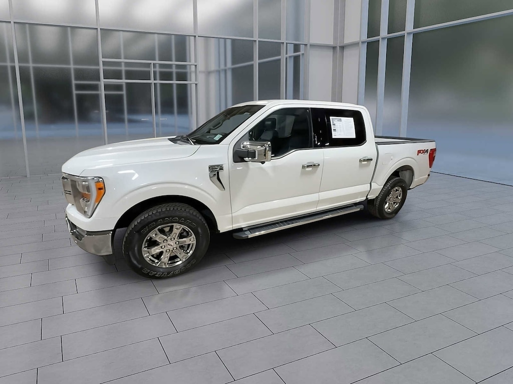 New Price! F-150 Lariat, 4D SuperCrew, 5.0L V8, 10-Speed Automatic, 4WD, Space White Metallic, Black w/Leather Trim Seats, 4x4 FX4 Off-Road Bodyside Decal, 6 Chrome Running Board, Chrome 2-Bar Grille w/4 Minor Bars, Chrome Door & Tailgate Handles w/Body-Color Bezel, Chrome Single-Tip Exhaust, Chrome Skull Caps on Exterior Mirrors, Class IV Trailer Hitch Receiver, Connected Built-In Navigation, Equipment Group 501A Mid, Evasive Steering Assist, Ford Co-Pilot360 Assist 2.0, FX4 Off-Road Package, Hill Descent Control, Integrated Trailer Brake Controller, Intelligent Adaptive Cruise Control w/Stop & Go, Intersection Assist, Lariat Chrome Appearance Package, Monotube Rear Shocks, Off-Road Tuned Front Shock Absorbers, Onboard 400W Outlet, Pro Trailer Backup Assist, Radio: B&O Sound System by Bang & Olufsen, Rock Crawl Mode, Speed Sign Recognition, Trailer Tow Package, Tray Style Floor Liner, Universal Garage Door Opener, Wheels: 18 Chrome-Like PVD. Clean CARFAX. Space White Metallic 2021 Ford F-150 Lariat 4WD 10-Speed Automatic 5.0L V8