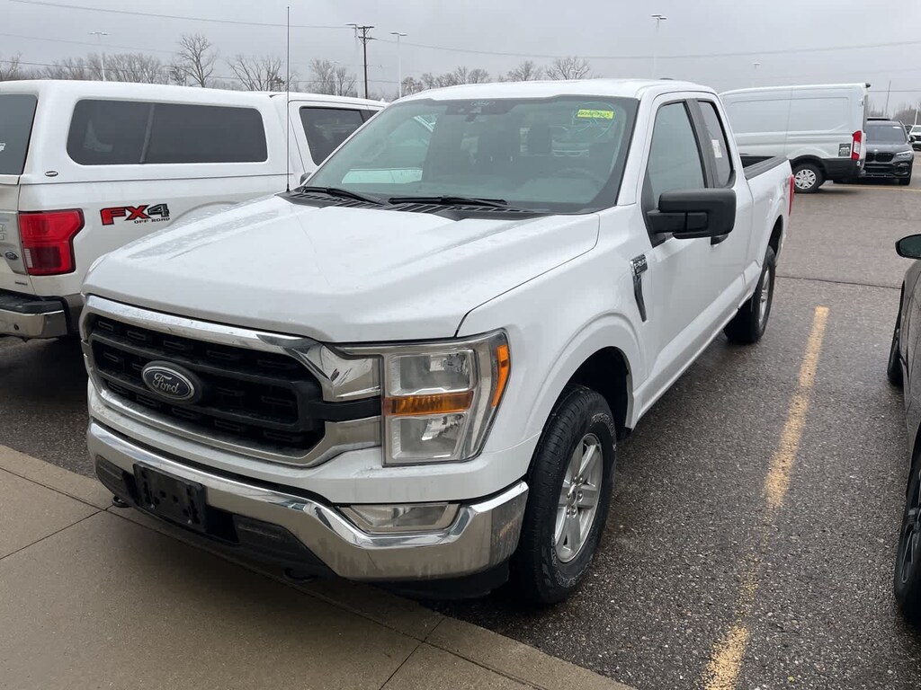 White 18/24 City/Highway MPG 2021 Ford F-150 XLT 4WD 10-Speed Automatic 2.7L V6 EcoBoost 4WD, ABS brakes, Alloy wheels, Compass, Electronic Stability Control, Heated door mirrors, Illuminated entry, Low tire pressure warning, Remote keyless entry, Traction control.