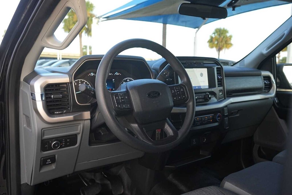 LOCAL TRADE, BLUETOOTH, CLEAN CARFAX, NON-SMOKER, Service Records Available!, ** TRAILER HITCH, ** REARVIEW CAMERA, ** KEYLESS ENTRY, ** LANE DEPARTURE WARNING, ** SATELLITE RADIO, ** STEERING WHEEL CONTROLS, ** ALARM SYSTEM, ** WIFI HOTSPOT, ** AUXILIARY AUDIO INPUT, ** LOCAL TRADE-IN, ** LOCALLY OWNED AND SERVICED, ** ALL WHEEL DRIVE, ** FOUR WHEEL DRIVE, ** BACK UP CAMERA, F-150 XL, 4D SuperCrew, 5.0L V8, 10-Speed Automatic, 4WD, Black Metallic, Black/Medium Dark Slate Cloth, 4-Wheel Disc Brakes, 6 Speakers, ABS brakes, Air Conditioning, AM/FM radio, Auto High Beam, Auto High-beam Headlights, Brake assist, Cloth 40/20/40 Front Seat, Compass, Cruise Control, Delay-off headlights, Driver door bin, Dual front impact airbags, Dual front side impact airbags, Electronic Stability Control, Emergency communication system: SYNC 4 911 Assist, Equipment Group 100A Standard, Exterior Parking Camera Rear, Fog Lamps, Front anti-roll bar, Front Center Armrest, Front License Plate Bracket, Front reading lights, Front wheel independent suspension, Fully automatic headlights, Illuminated entry, Lane-Keeping System, Low tire pressure warning, Occupant sensing airbag, Outside temperature display, Overhead airbag, Overhead console, Panic alarm, Passenger door bin, Passenger vanity mirror, Power door mirrors, Power steering, Power windows, Pre-Collision Assist w/Automatic Emergency Braking, Radio data system, Radio: AM/FM Stereo w/6 Speakers, Rear step bumper, Rear Window Defroster, Rear Window Fixed Privacy Glass, Rear-View Camera, Remote keyless entry, Security system, Speed-sensing steering, Split folding rear seat, Steering wheel mounted audio controls, SYNC 4, Tachometer, Tailgate Step w/Tailgate Work Surface, Telescoping steering wheel, Tilt steering wheel, Traction control, Trip computer, Variably intermittent wipers, Voltmeter, Wheels: 17 Silver Steel, F-150 XL, 4D SuperCrew, 5.0L V8, 10-Speed Automatic, 4WD, Black Metallic, Black/Medium Dark Slate Cloth.