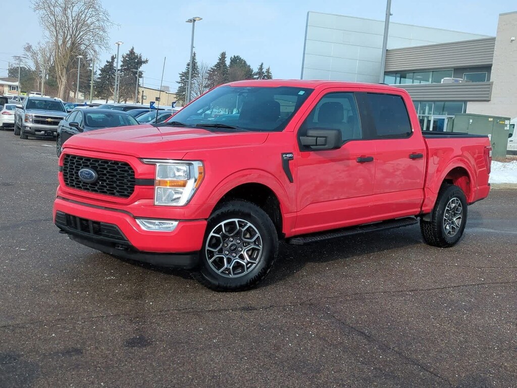 Race Red over Black Sport cloth, this 2021 F-150 SuperCrew 4x4 is a sharp, value-driven truck built for everyday work and weekend use. Powered by the proven 2.7L EcoBoost V6 paired with a 10-speed automatic, it delivers strong torque, towing capability, and solid fuel efficiency for a full-size pickup.