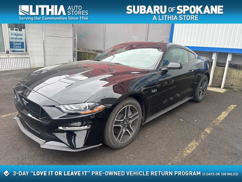 Shadow Black 2021 Ford Mustang GT RWD 6-Speed Manual 5.0L V8 Ti-VCT 3.55 Limited Slip Rear Axle, 4-Wheel Disc Brakes, ABS brakes, Air Conditioning, Alloy wheels, AM/FM Stereo, Auto High-beam Headlights, Auto-dimming Rear-View mirror, Brake assist, Bumpers: body-color, Compass, Delay-off headlights, Driver door bin, Driver vanity mirror, Dual front impact airbags, Dual front side impact airbags, Electronic Stability Control, Emergency communication system: 911 Assist, Equipment Group 300A, Exterior Parking Camera Rear, Four wheel independent suspension, Front anti-roll bar, Front Bucket Seats, Front Center Armrest, Front fog lights, Front reading lights, Fully automatic headlights, Illuminated entry, Knee airbag, Low tire pressure warning, Occupant sensing airbag, Outside temperature display, Overhead airbag, Overhead console, Panic alarm, Passenger door bin, Passenger vanity mirror, Power door mirrors, Power driver seat, Power passenger seat, Power steering, Power windows, Radio data system, Rain sensing wipers, Rear anti-roll bar, Rear window defroster, Remote keyless entry, Security system, Speed control, Speed-sensing steering, Speed-Sensitive Wipers, Split folding rear seat, Spoiler, Steering wheel mounted audio controls, Tachometer, Telescoping steering wheel, Tilt steering wheel, Traction control, Trip computer, Variably intermittent wipers, Voltmeter, Wheels: 18 x 8 Machined-Face Aluminum.