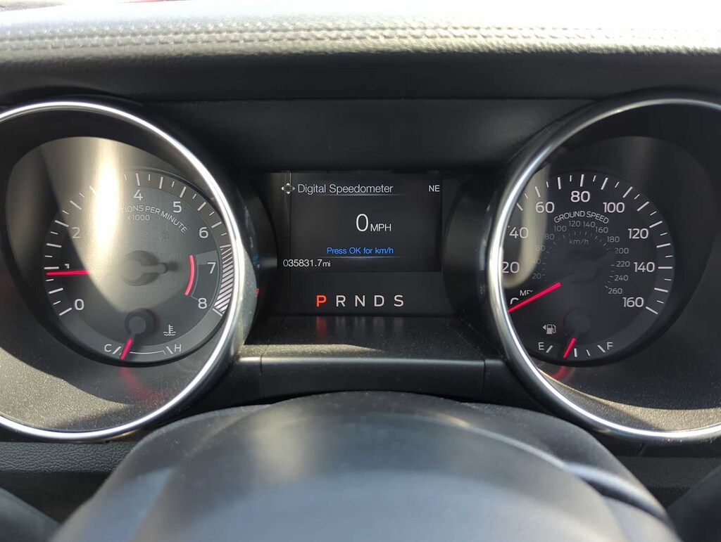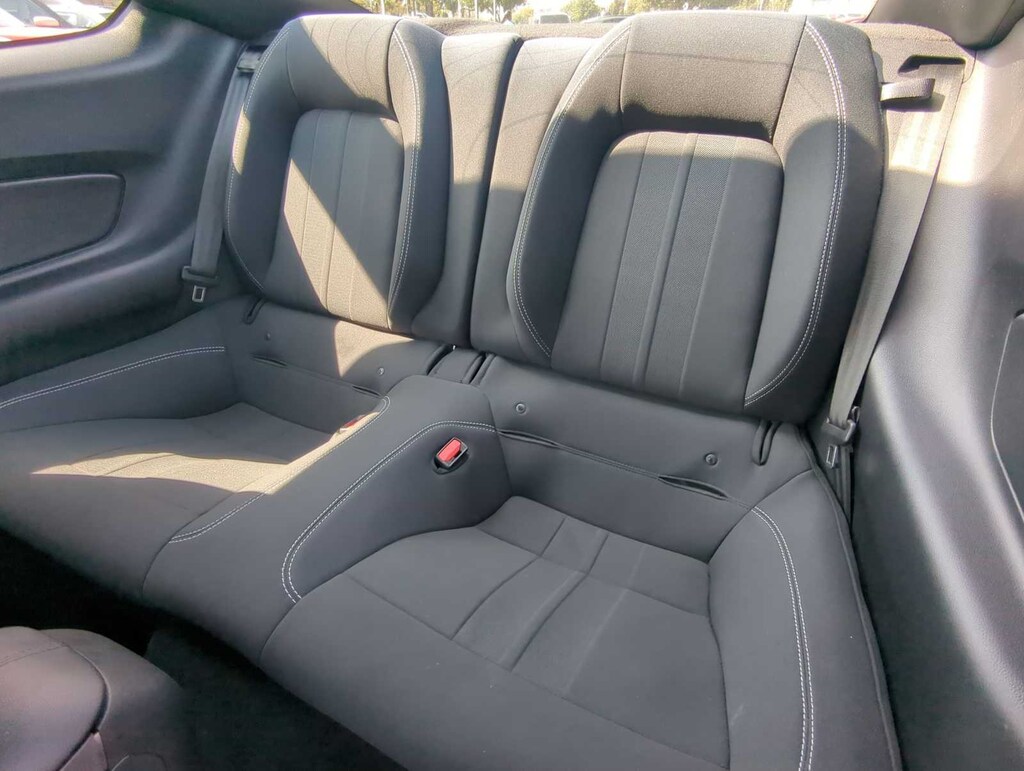Black Accent Package (Black Blade Decklid Spoiler, Black Front & Rear Pony Badges, Black Mirror Caps, Painted Black Roof, and Wheels: 19 x 8.5 Ebony Black-Painted Aluminum), Equipment Group 101A (AM/FM Stereo w/MP3 Player, Cloth Bucket Seats, Dual-Zone Automatic Temperature Control, Reverse Sensing System, Selectable Drive Modes w/Toggle Switches, SiriusXM Radio, SYNC 3 Communications & Entertainment System, and Wheels: 18 x 8 Machined-Face Aluminum), Exterior Parking Camera Rear, Fully automatic headlights, Steering wheel mounted audio controls, 4-Wheel Disc Brakes, ABS brakes, Air Conditioning, Alloy wheels, AM/FM Stereo, Auto High-beam Headlights, Auto-dimming Rear-View mirror, Brake assist, Bumpers: body-color, Compass, Delay-off headlights, Driver door bin, Driver vanity mirror, Dual front impact airbags, Dual front side impact airbags, Electronic Stability Control, Emergency communication system: 911 Assist, Four wheel independent suspension, Front anti-roll bar, Front Bucket Seats, Front Center Armrest, Front reading lights, Illuminated entry, Knee airbag, Leather Shift Knob, Low tire pressure warning, Occupant sensing airbag, Outside temperature display, Overhead airbag, Overhead console, Panic alarm, Passenger door bin, Passenger vanity mirror, Power door mirrors, Power steering, Power windows, Radio data system, Rain sensing wipers, Rear anti-roll bar, Rear window defroster, Remote keyless entry, Security system, Speed control, Speed-sensing steering, Speed-Sensitive Wipers, Split folding rear seat, Tachometer, Telescoping steering wheel, Tilt steering wheel, Traction control, Trip computer, Variably intermittent wipers, and Voltmeter.