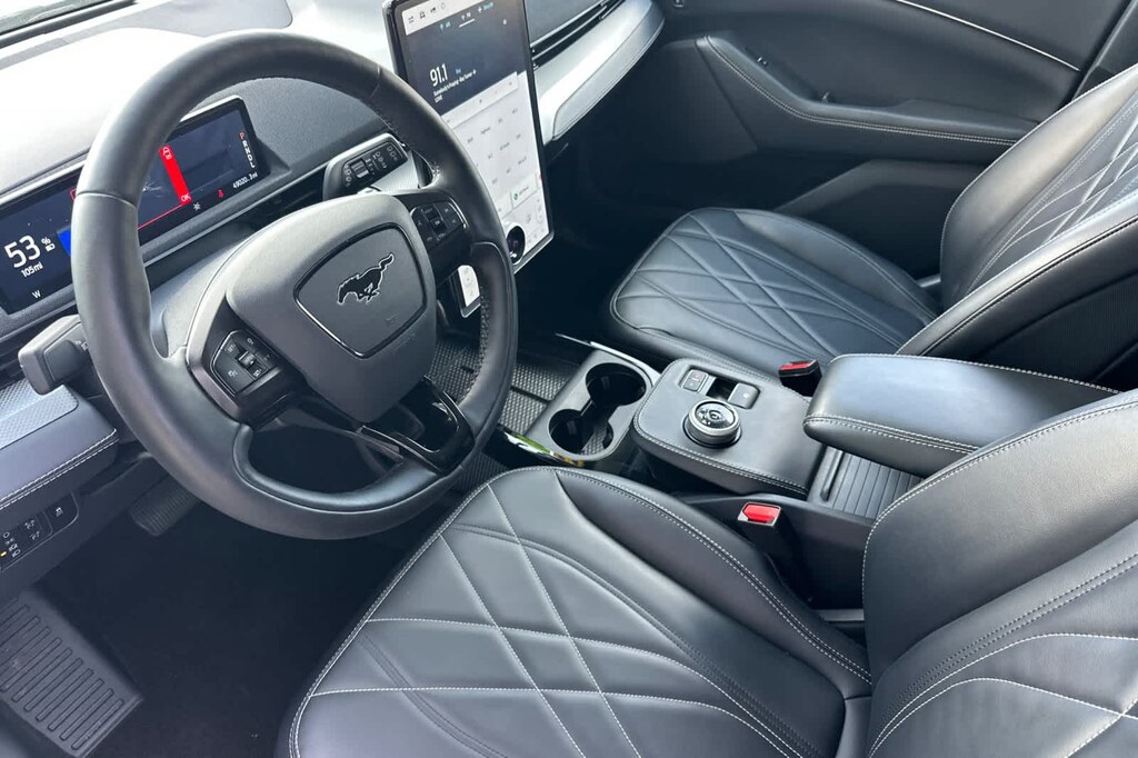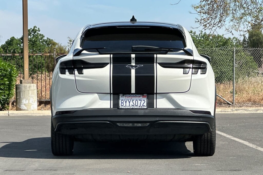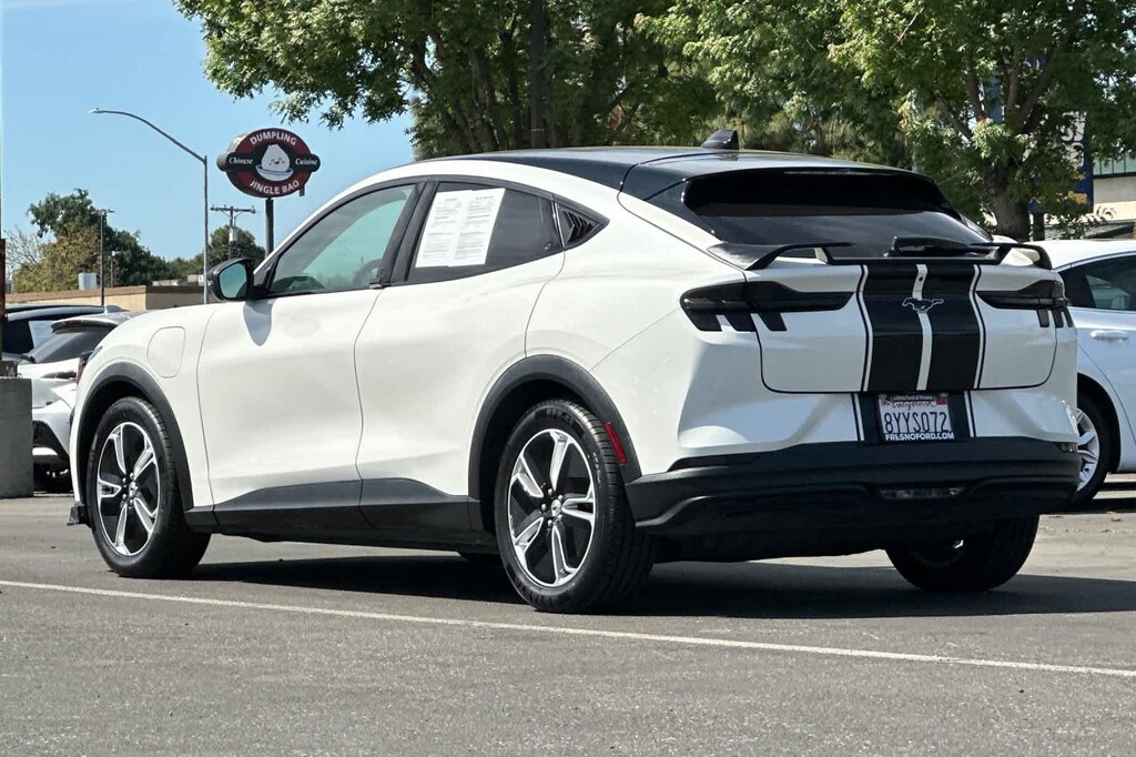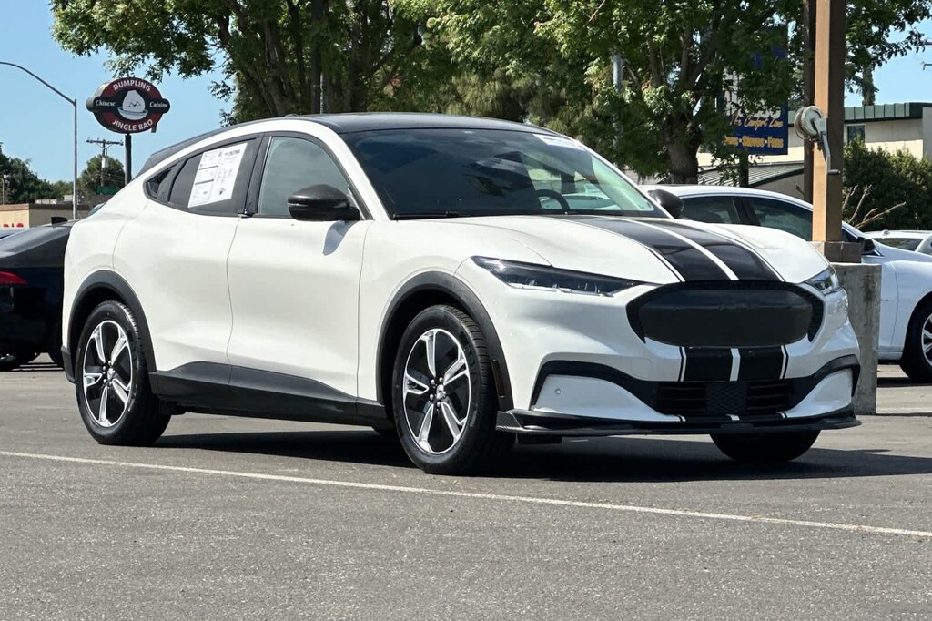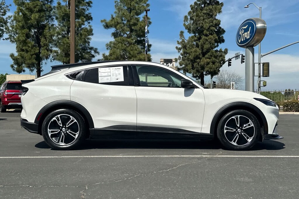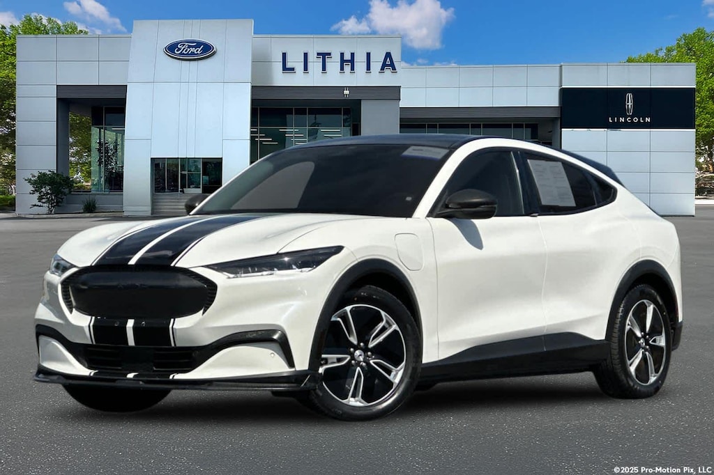 Lithia Ford and Lincoln of Fresno is pleased to offer this Star White Metallic Tri-Coat 2021 Ford Mustang Mach-E Select for purchase, this vehicle is well equipped with many features including: Comfort/Appearance Package (6-Way Manual Front Passenger Seat, Black Painted Roof, Cargo Area Cover, Hands-Free Foot-Activated Liftgate, Heated Front Row Seats, Heated Steering Wheel, Memory Drivers Seat & Side-View Mirrors, and Wheels: 19 Shadow Silver-Painted Aluminum), Equipment Group 100A, Interior Protection Package (Pre-Installed) (Cargo Area Protector and Front & Rear Floor Liners), 4-Wheel Disc Brakes, 6 Speakers, ABS brakes, ActiveX Bucket Seats, Air Conditioning, Alloy wheels, AM/FM radio: SiriusXM, AM/FM Stereo, Apple CarPlay/Android Auto, Auto High-beam Headlights, Auto-dimming Rear-View mirror, Automatic temperature control, Axle Ratio: 9.05, Brake assist, Bumpers: body-color, Compass, Delay-off headlights, Driver door bin, Driver vanity mirror, Dual front impact airbags, Dual front side impact airbags, Electronic Stability Control, Emergency communication system: 911 Assist, Exterior Parking Camera Rear, Four wheel independent suspension, Front anti-roll bar, Front Bucket Seats, Front Center Armrest, Front dual zone A/C, Front reading lights, Fully automatic headlights, Garage door transmitter, Heated door mirrors, Illuminated entry, Knee airbag, Low tire pressure warning, Navigation system: Connected Navigation, Occupant sensing airbag, Outside temperature display, Overhead airbag, Overhead console, Panic alarm, Passenger door bin, Passenger vanity mirror, Power door mirrors, Power driver seat, Power steering, Power windows, Radio data system, Rain sensing wipers, Rear anti-roll bar, Rear seat center armrest, Rear side impact airbag, Rear window defroster, Rear window wiper, Remote keyless entry, Security system, SiriusXM Radio w/360L, Speed control, Speed-sensing steering, Speed-Sensitive Wipers, Split folding rear seat, Spoiler, Steering wheel mounted audio controls, SYNC 4A w/Enhanced Voice Recognition, Telescoping steering wheel, Tilt steering wheel, Traction control, Trip computer, Turn signal indicator mirrors, Variably intermittent wipers, and Wheels: 18 Carbonized Gray-Painted Aluminum. AWD Dual Electric Motor Single-Speed Automatic Select