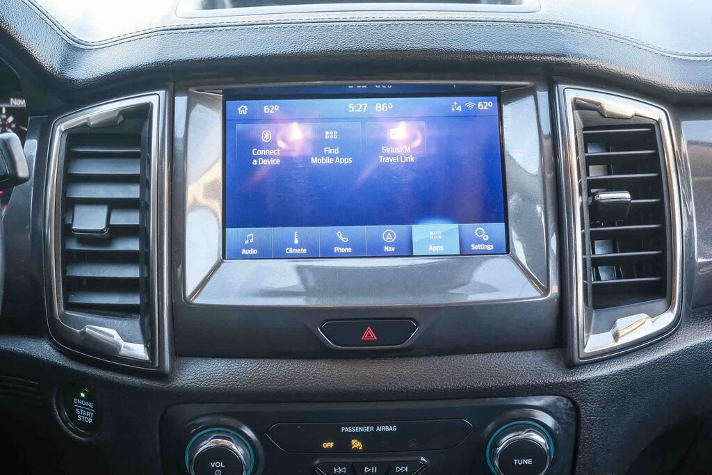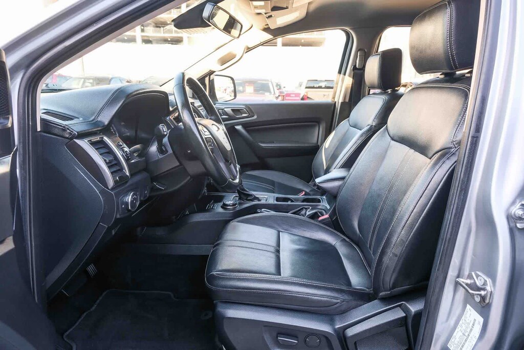 WELCOME TO TOYOTA OF DOWNTOWN LA... 2021 Ford Ranger Lariat Iconic Silver Metallic 4WD 10-Speed Automatic EcoBoost 2.3L I4 GTDi DOHC Turbocharged VCT 4WD, 5 Rectangular Black Running Boards, Adaptive Cruise Control, Auto-dimming Rear-View mirror, Automatic temperature control, Black Appearance Package, Black Grille w/Black Surround & Black Bars, Black Mirror Skull Caps, Body-Color Front & Rear Bumpers, Brake assist, Class IV Trailer Hitch Receiver, Dark Box Decal, Electronic Stability Control, Electronic-Locking Rear Differential, Equipment Group 501A High, Exterior Parking Camera Rear, Forward Sensing System, Front Bucket Seats, Front dual zone A/C, Front fog lights, Front Heated Leather-Trimmed Bucket Seats, Front reading lights, Fully automatic headlights, FX4 Off-Road Box Decal, FX4 Off-Road Package, Heated front seats, Illuminated entry, Navigation, Off-Road Screen in Cluster, Off-Road Tuned Suspension, Radio: B&O Sound System by Bang & Olufsen, Rain-Sensing Wipers, Remote Start, SYNC 3, Technology Package, Terrain Management System, Tough Bed Spray-In Bedliner, Trailer Tow Package, Wheels: 18 Black Painted Aluminum. Clean CARFAX.