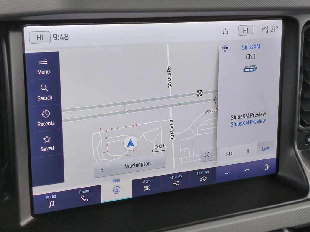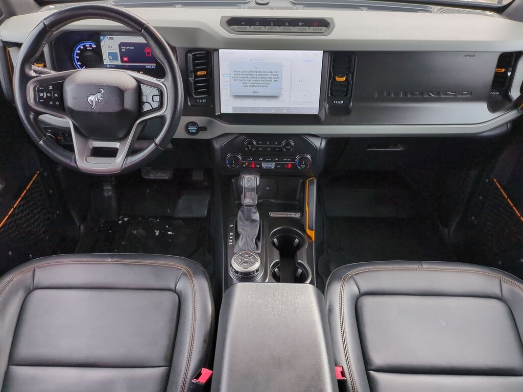 Recent Arrival! 2022 Ford Bronco Badlands Is nicely equipped with Equipment Group 334A Lux Package (12" LCD Capacitive Touchscreen w/Swipe Capability, 2 Smart Charging USB Ports In Dashboard, 2-Door Intelligent Access w/Lock/Unlock, 360-Degree Camera, Adaptive Cruise Control, Additional Sound Deadening, Ambient Footwell Lighting, Auto-Dimming Interior Rear-View Mirror, Connected Built-In Navigation, Dr & Pass Illuminated Sliding Visor Vanity Mirrors, Dual-Zone Electronic Automatic Temperature Control, Enhanced Voice Recognition, Evasive Steering Assist, Front Parking Sensors, Front Row Heated Seats, Heated Steering Wheel, Information on Demand Panel, Power Outlet - Back Side of Center Floor Console, Radio: B&O Sound System by Bang & Olufsen, Rear Parking Sensors, Sideview Mirrors, Universal Garage Door Opener, and Wireless Charging Pad), Sasquatch Package (4.7 Final Drive Ratio, High Clearance Fender Flares, High Clearance Suspension, Position-Sensitive Bilstein Shock Absorbers, and Wheels: 17" Black High Gloss-Painted Aluminum), 4-Wheel Disc Brakes, 6 Speakers, ABS brakes, Air Conditioning, AM/FM radio: SiriusXM with 360L, AM/FM Stereo, Auto High-beam Headlights, Brake assist, Carbonized Gray Molded-In-Color Hard Top, Compass, Delay-off headlights, Driver door bin, Driver vanity mirror, Dual front impact airbags, Dual front side impact airbags, Electronic Stability Control, Emergency communication system: 911 Assist, Exterior Parking Camera Rear, Front & Rear Floor Liners, Front anti-roll bar, Front Bucket Seats, Front Center Armrest, Front reading lights, Front Row Top Panels & Door Storage Bags, Front Row Top Panels Storage Bag, Front wheel independent suspension, Fully automatic headlights, Heated door mirrors, Illuminated entry, Integrated roll-over protection, Low tire pressure warning, Occupant sensing airbag, Outside temperature display, Overhead airbag, Overhead console, Panic alarm, Passenger door bin, Passenger vanity mirror, Power door mirrors, Power steering, Power windows, Radio data system, Rear-Window Defroster & Washer, Remote keyless entry, Security system, SiriusXM Radio w/360L, Speed control, Split folding rear seat, Steering wheel mounted audio controls, SYNC 4, Tachometer, Telescoping steering wheel, Tilt steering wheel, Traction control, Trip computer, and Variably intermittent wipers.