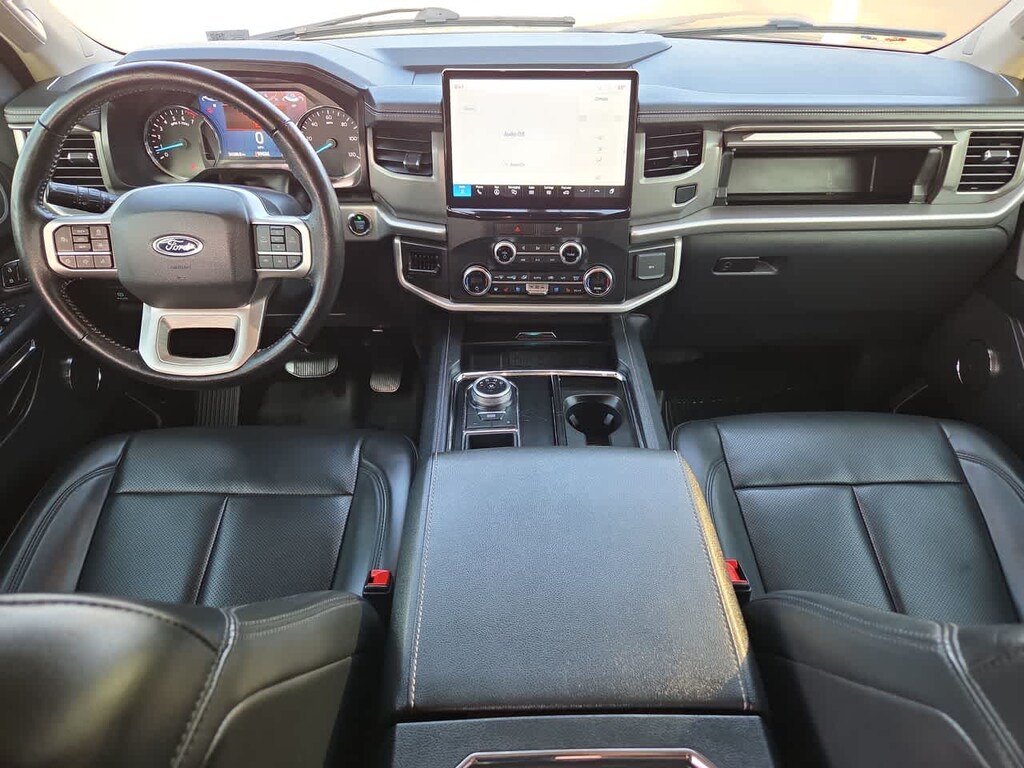 EQUIPMENT GROUP 202A HIGH PACKAGE Wireless Charging Pad, Located in media hub, Power Liftgate, 2nd Row Power-Folding Captains Chairs, armrests and tip-and-slide, Accent Color Painted Rear Bumper, Heated Steering Wheel, Heated/Ventilated Front Seats, 110V/150W AC Power Outlet, Power-Folding Sideview Mirrors w/Autofold, power and heated glass, turn signal indicators, security approach lamps, driver/passenger side memory, drivers side auto-dimming and body-color caps, 3rd Row Vinyl Power-Folding Head Restraints, power recline, 4-Door Intelligent Access (Lock/Unlock), Power-Adjustable Pedals w/Memory, Bright Chrome Plated Accent Platform Running Boards, SecuriCode Keyless Entry Keypad, Power Tilt/Telescopic Steering Wheel w/Memory, Ambient Lighting, Remote Start, Advanced Security Pack, TRANSMISSION: 10-SPEED AUTOMATIC W/SELECTSHIFT (STD), ENGINE: 3.5L ECOBOOST V6 (STD). Ford XLT with Forged Green exterior and Black Onyx interior features a V6 Cylinder Engine with 380 HP at 5000 RPM*.