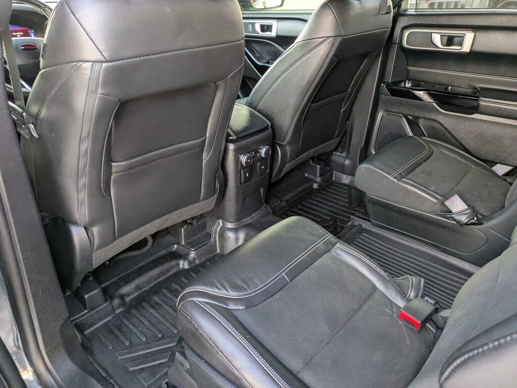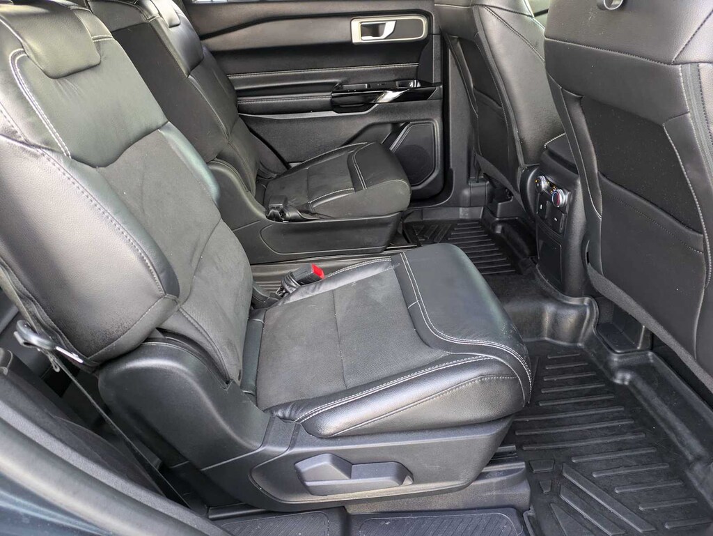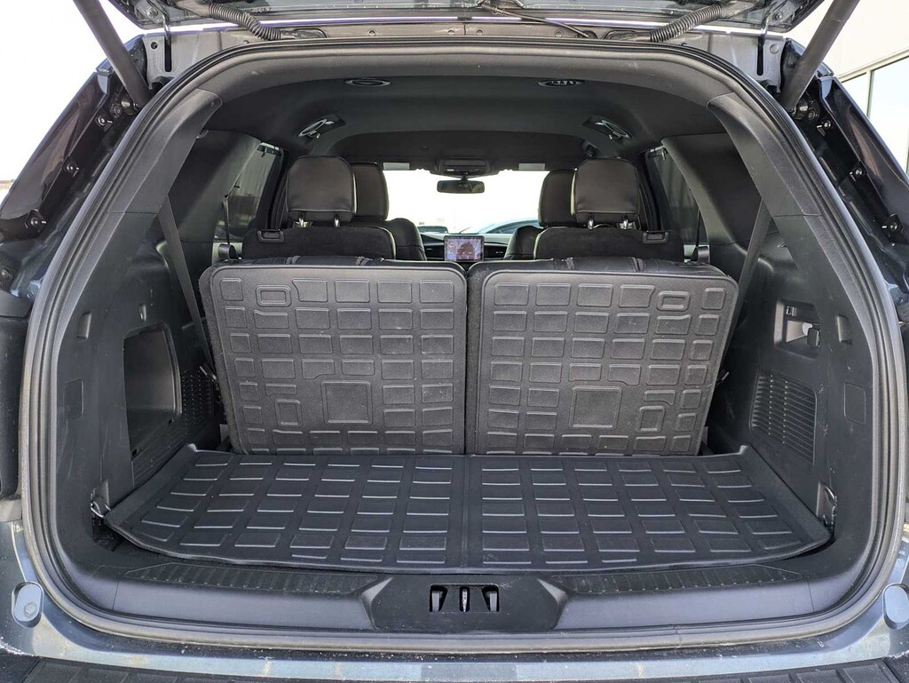 Stone Blue exterior and Ebony interior. FUEL EFFICIENT 24 MPG Hwy/18 MPG City! Heated Leather Seats, Third Row Seat, Power Liftgate, Turbo Charged Engine, 4x4, Hitch, ST STREET PACK, TRANSMISSION: 10-SPEED AUTOMATIC, Quad Bucket Seats.