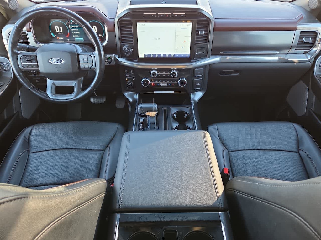 LARIAT SPORT APPEARANCE PACKAGE unique interior finish, Box Side Decals, Chrome Single-Tip Exhaust, Wheels: 18 6-Spoke Machined Aluminum, gloss black painted pockets, Accent-Color Angular Step Bars, Dark 2-Bar & 1 Minor Bar Style Grille, black surround and black mesh, Body-Color Front & Rear Bumpers, EQUIPMENT GROUP 501A MID Radio: B&O Sound System by Bang & Olufsen, HD radio and 8 speakers including subwoofer, Universal Garage Door Opener, Onboard 400W Outlet, Replaces two (2) front USB charge only ports and an additional outlet in the bed, ENGINE: 3.5L V6 ECOBOOST GVWR: 7,050 lbs Payload Package, 3.31 Axle Ratio, BED UTILITY PACKAGE BoxLink, 4 premium locking cleats, LED Box Lighting, Tailgate Step w/Tailgate Work Surface, Power Tailgate, 360 DEGREE CAMERA trailer reverse guidance, FORD CO-PILOT360 ASSIST 2.0 Evasive Steering Assist, Intelligent Adaptive Cruise Control w/Stop & Go, lane centering, Speed Sign Recognition, Connected Built-In Navigation, Navigation services require SYNC4 and FordPass Connect (optional on select vehicles), complimentary connect service and the FordPass app (see FordPass Terms for details), Eligible vehicles receive a complimentary 90-day trial of navigation services that begins on the new vehicle warranty start date, Customers must unlock the navigation service trial by activating the eligible vehicle w/a FordPass member account, If not subscribed by the end of the complimentary period, the navigation service will terminate, Connected service and features depend on compatible AT&T network availability, Evolving technology/cellular, ELECTRONIC LOCKING W/3.31 AXLE RATIO, TRANSMISSION: ELECTRONIC 10-SPEED AUTOMATIC selectable drive modes: normal, ECO, sport, tow/haul, slippery, deep snow/sand and mud/rut (STD). Ford LARIAT with Carbonized Gray exterior and Black interior features a V6 Cylinder Engine with 325 HP at 5000 RPM*.