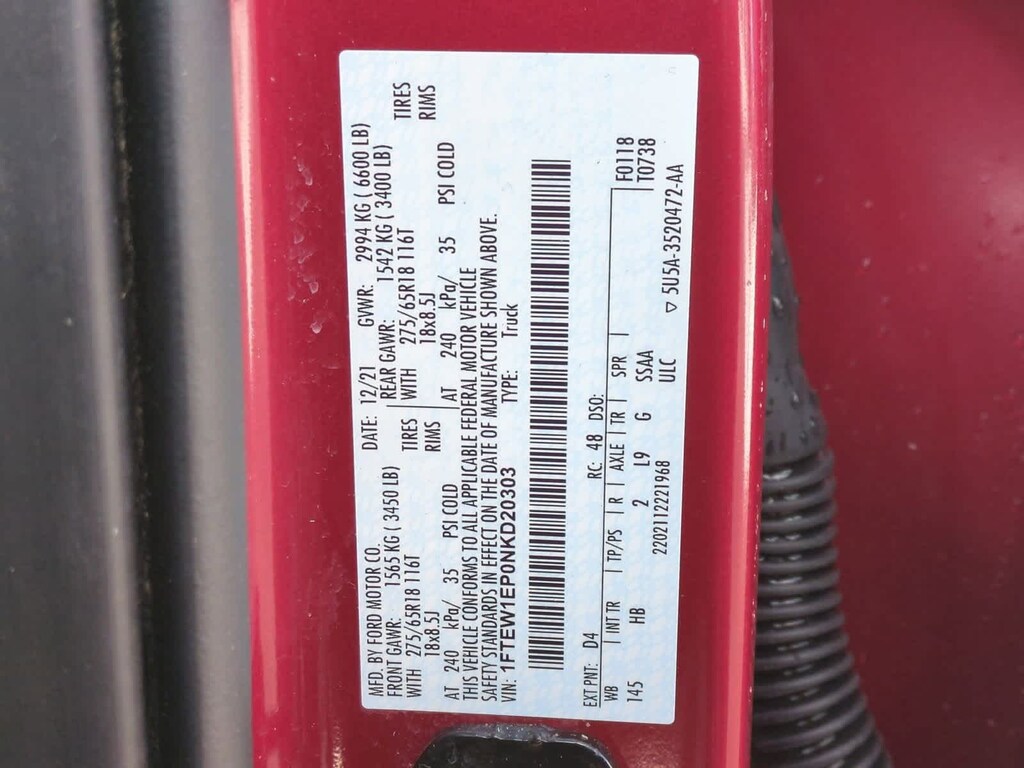2022 Ford F-150 Lariat Rapid Red Metallic Tinted Clearcoat 4WD 2.7L V6 EcoBoost, 10-Speed Automatic, 4WD, Rapid Red Metallic Tinted Clearcoat, Black w/Leather Trim Seats, 360 Degree Camera, Equipment Group 500A Standard, GVWR: 6,600 lbs Payload Package, Integrated Trailer Brake Controller, Navigation system: Connected Navigation, Pro Trailer Backup Assist, Tow Technology Package.