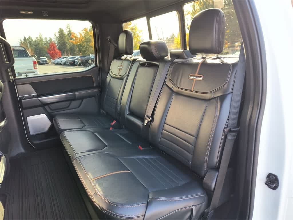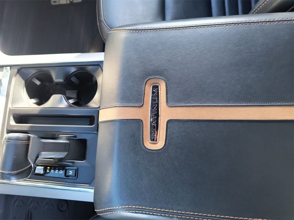 The exterior design is bold and sophisticated, featuring chrome accents, LED lighting, and distinctive Platinum badging. Its both stylish and functional, offering a factory tow package, power running boards, and a spray-in bed liner for added protection.