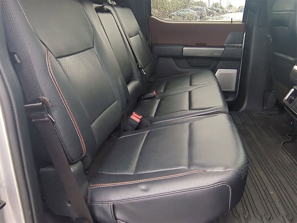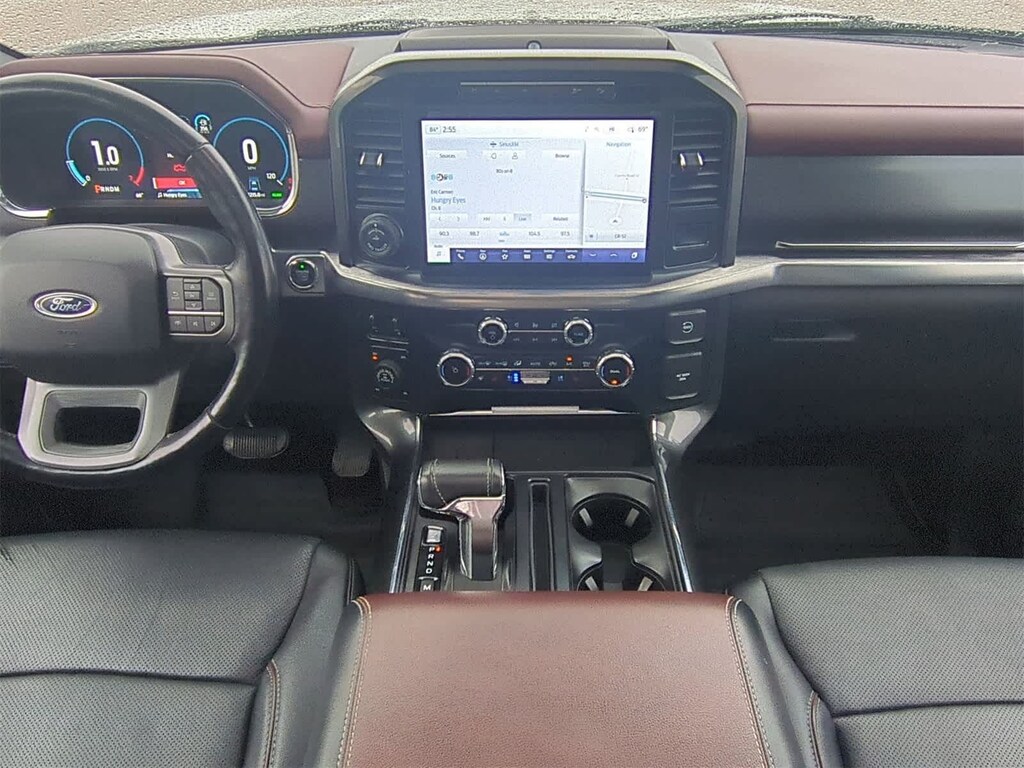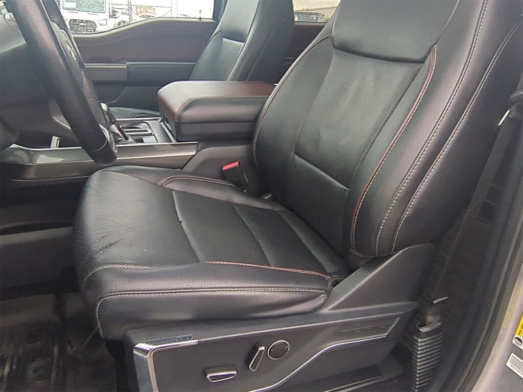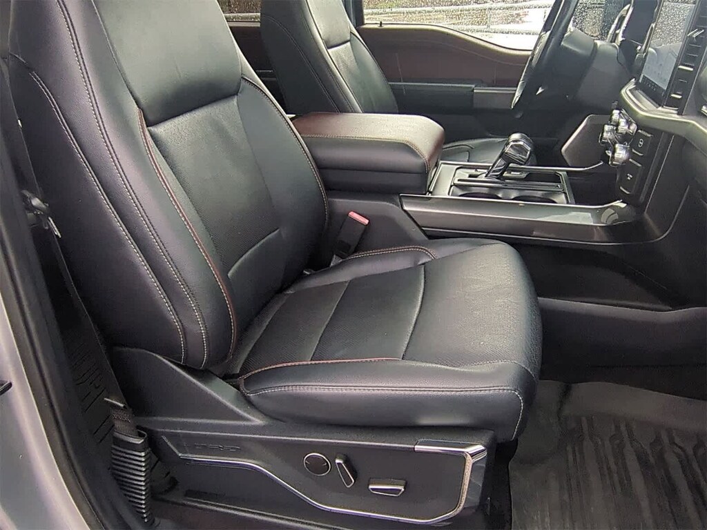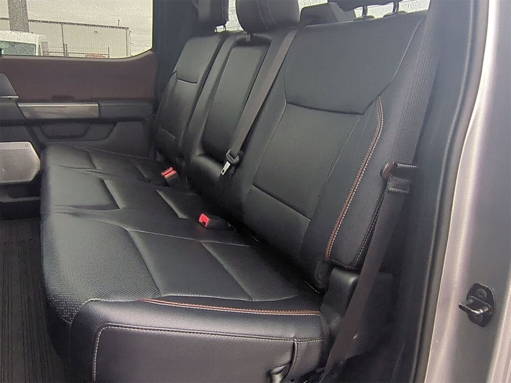 EQUIPMENT GROUP 502A HIGH Rain-Sensing Wipers, Power Tilt/Telescoping Steering Column w/Memory, Onboard 400W Outlet, 2nd outlet in the console and an additional outlet in the bed, Lariat Chrome Appearance Package, 2 chrome front tow hooks, Chrome Single-Tip Exhaust, 6 Bright Polished Running Board, Chrome Door & Tailgate Handles w/Body-Color Bezel, Wheels: 18 Chrome-Like PVD, Chrome 2-Bar Grille w/4 Minor Bars, painted silver surround and background mesh, Chrome Skull Caps on Exterior Mirrors, Radio: B&O Sound System by Bang & Olufsen, HD radio and 8 speakers including subwoofer, 2nd Row Heated Seats, Power Glass Sideview Mirr w/Chrome Skull Caps, power-folding, heat, turn signal, memory, auto-dimming feature (drivers side) and high-intensity LED security approach lamps, Universal, ENGINE: 3.5L POWERBOOST FULL-HYBRID V6 GVWR: 7,350 lbs Payload Package, Electronic Locking w/3.73 Axle Ratio, FORD CO-PILOT360 ACTIVE 2.0 forward sensing system, BlueCruise, Active Park Assist 2.0, TWIN PANEL MOONROOF, POWER-DEPLOYABLE RUNNING BOARDS Replaces step bar, BED UTILITY PACKAGE BoxLink, 4 premium locking cleats, LED Box Lighting, Tailgate Step w/Tailgate Work Surface, Power Tailgate, 360 DEGREE CAMERA trailer reverse guidance, LARIAT SPORT APPEARANCE PACKAGE unique interior finish, Box Side Decals, Chrome Single-Tip Exhaust, Wheels: 18 6-Spoke Machined Aluminum, gloss black painted pockets, Accent-Color Angular Step Bars, Dark 2-Bar & 1 Minor Bar Style Grille, black surround and black mesh, Body-Color Front & Rear Bumpers, FORD CO-PILOT360 ASSIST 2.0 Evasive Steering Assist, Intelligent Adaptive Cruise Control w/Stop & Go, lane centering, Speed Sign Recognition, Connected Built-In Navigation, Navigation services require SYNC4 and FordPass Connect (optional on select vehicles), complimentary connect service and the FordPass app (see FordPass Terms for details), Eligible vehicles receive a complimentary 90-day trial of navigation services that begins on the new vehicle warranty start date, Customers must unlock the navigation service trial by activating the eligible vehicle w/a FordPass member account, If not subscribed by the end of the complimentary period, the navigation service will terminate, Connected service and features depend on compatible AT&T network availability, Evolving technology/cellular. 2022 Ford F-150 with Iconic Silver exterior and Black interior features a V6 Cylinder Engine with 325 HP at 5000 RPM*.