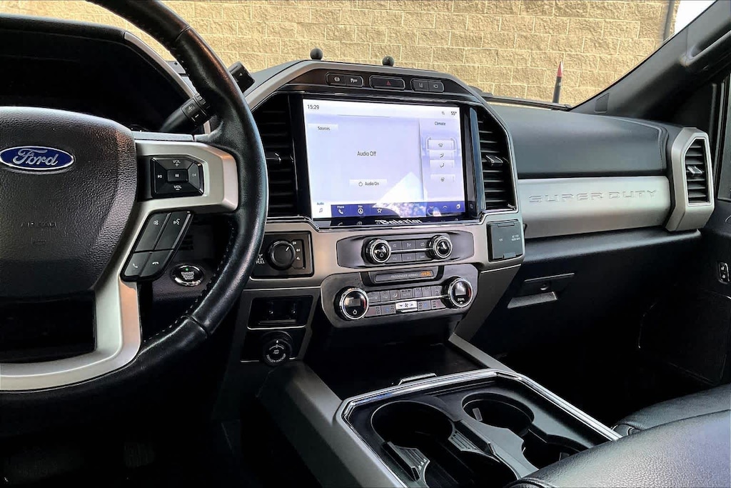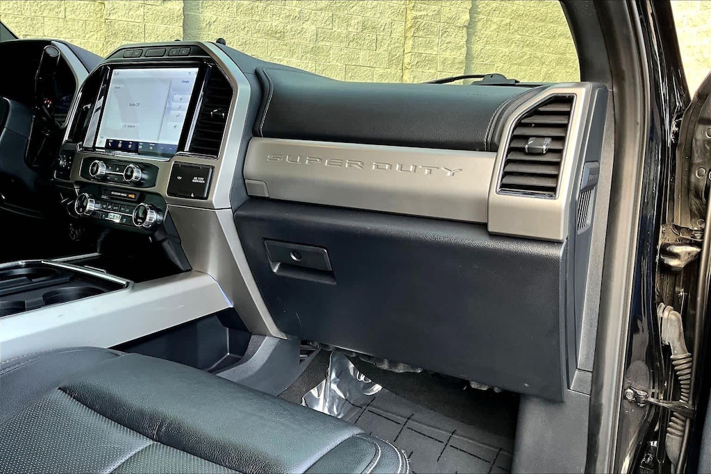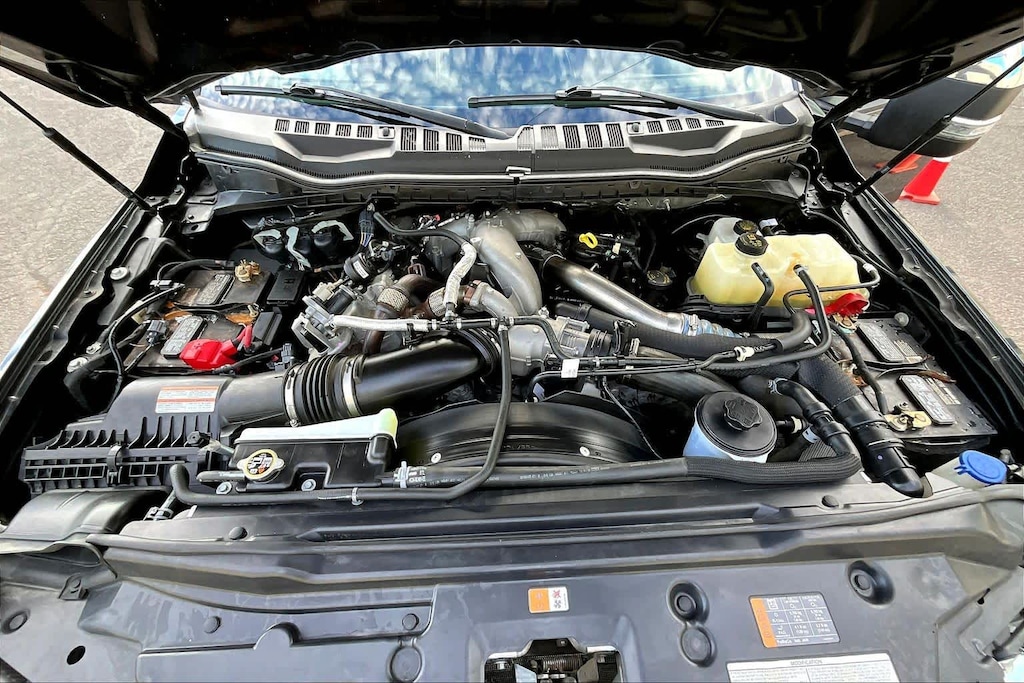 ENGINE: 6.7L 4V OHV POWER STROKE V8 TURBO DIESEL B20 manual push-button engine-exhaust braking and intelligent oil-life monitor, 240 Amp Alternator, 34 Gallon Fuel Tank, 3.31 Axle Ratio, Dual 78-AH 750 CCA Batteries, LARIAT ULTIMATE PACKAGE Power Heated/Ventilated Driver Seat w/Memory, PowerScope Trailer Tow Mirrors w/Memory, EASY ENTRY®/Exit Memory Drivers Seat Feature, Tailgate Step & Handle, LED Box Lighting, LED Center High-Mounted Stop Lamp (CHMSL), Intelligent Access w/Push-Button Start, Power Heated/Ventilated Passenger Seat, Memory Power-Adjustable Pedals, Remote Start System, Ambient Lighting - Fixed Color, Power Telescoping/Tilt Steering Wheel/Column, memory and audio controls, Remote Tailgate Release, PRO TRAILER BACKUP ASSIST - HIGH CAPACITY Note: Salespersons Portfolio or Trailer Towing Guide should be consulted for specific trailer towing or camper limits and corresponding required equipment, axle ratios and model availability, See Supplemental Reference for vehicle height consideration, Ultimate Trailer Tow Camera System, rear view camera, 360 degree camera system, rear CHMSL camera, trailer reverse guidance and LED center high-mounted stop lamp, High Capacity Trailer Tow Package, increased GCW from 23,500 lbs, to 30,000 lbs and upgraded axle, Note: Salespersons Portfolio or Trailer Towing Guide should be consulted for specific trailer towing or camper limits and corresponding required equipment, axle ratios and model availability, See Supplemental Reference for vehicle height, CHROME PACKAGE 2 front chrome tow hooks, Unique Chrome Mirror Caps, Wheels: 18 Chrome PVD Aluminum, Body-Color Door Handles w/Chrome Insert, 6 Angular Bright Polished Step Bars, Chrome Exhaust Tip, TOUGH BED SPRAY-IN BEDLINER tailgate-guard, black box bed tie-down hooks and black bed attachment bolts, ELECTRONIC-LOCKING W/3.55 AXLE RATIO, RAIN-SENSING WINDSHIELD WIPERS Heated Steering Wheel, TRANSMISSION: TORQSHIFT 10-SPEED AUTOMATIC SelectShift and selectable drive modes: normal, tow/haul, eco, deep sand/snow and slippery. Ford LARIAT with Agate Black exterior and Black interior features a 8 Cylinder Engine with 475 HP at 2600 RPM*.