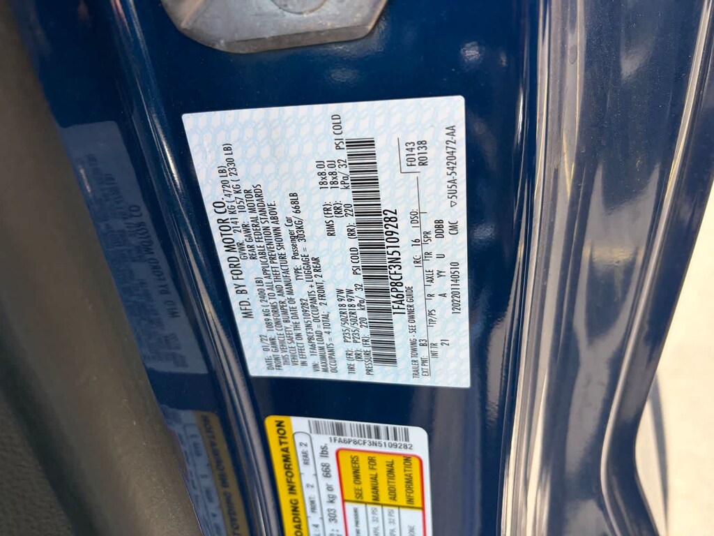2022 Ford Mustang Blue Metallic 10-Speed Automatic 5.0L V8 Ti-VCT Android Auto, Apple Car Play & Android Auto, Backup Camera, Bluetooth, CarPlay, Dual Powered Seats, Dual Zone Climate Control, Heated Seats, Keyless Entry, Leather Seats, Multi Zone Climate Control, Navigation System, Powered Driver Seat, Premium Sound System, Premium Wheels, Rear Spoiler, USB Port, Mustang GT, 2D Coupe, 5.0L V8 Ti-VCT, 10-Speed Automatic, RWD, Blue Metallic, Ebony Leatherette.