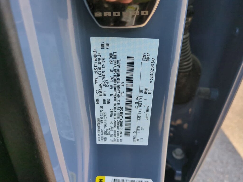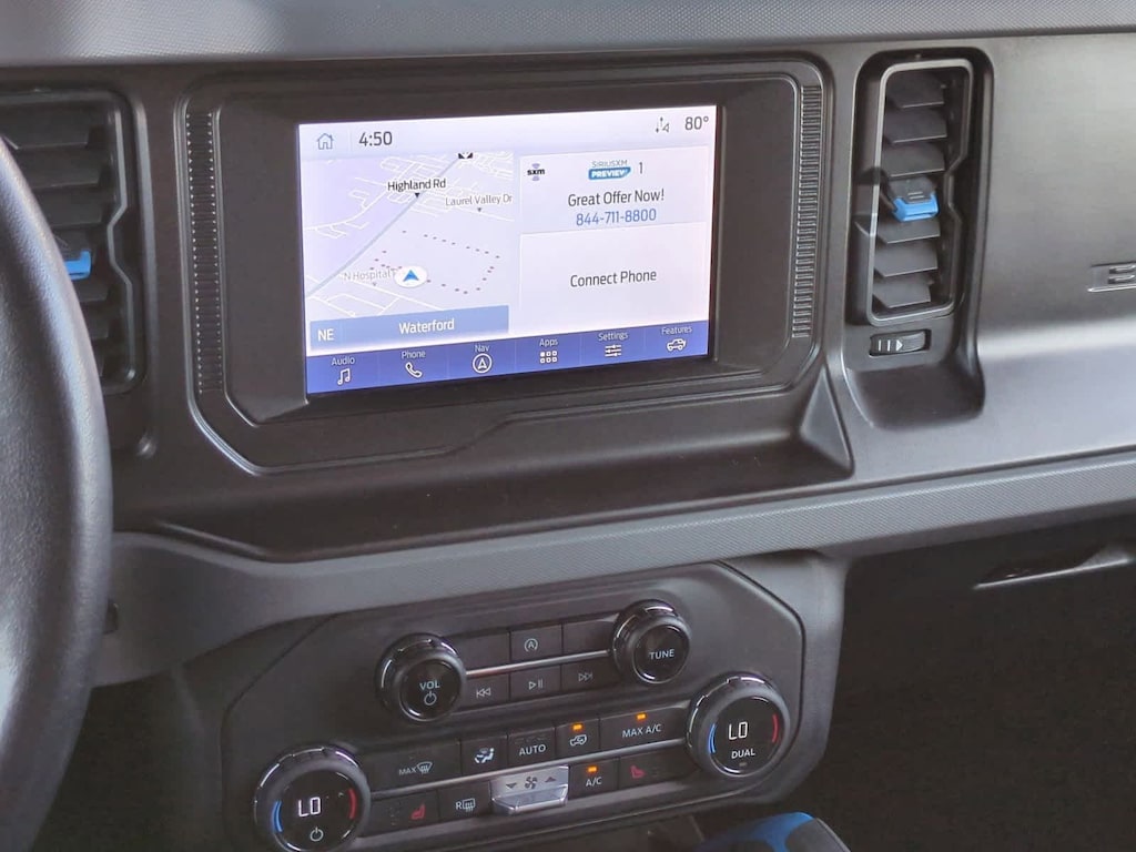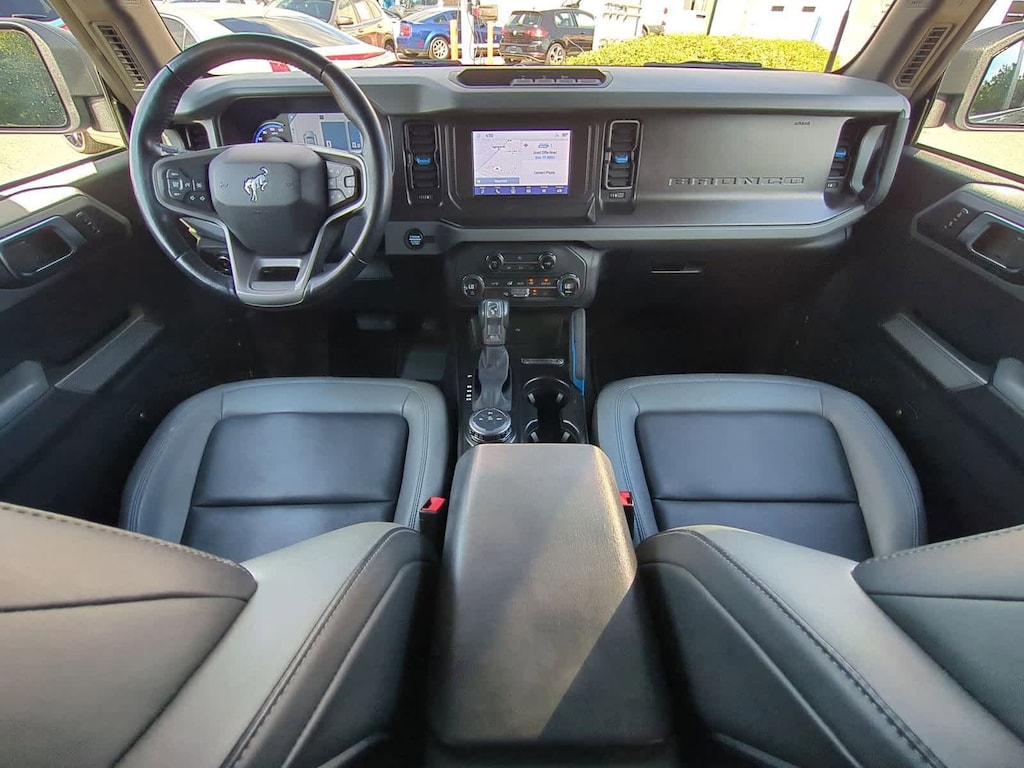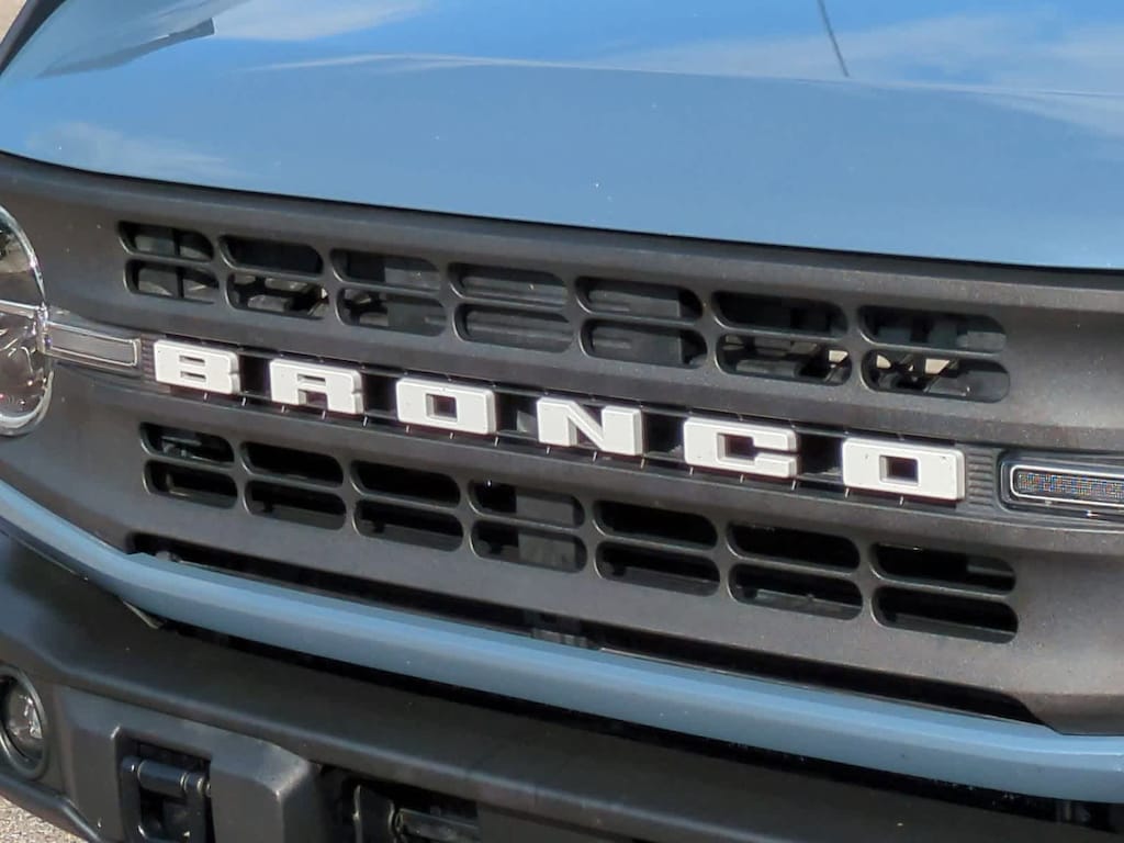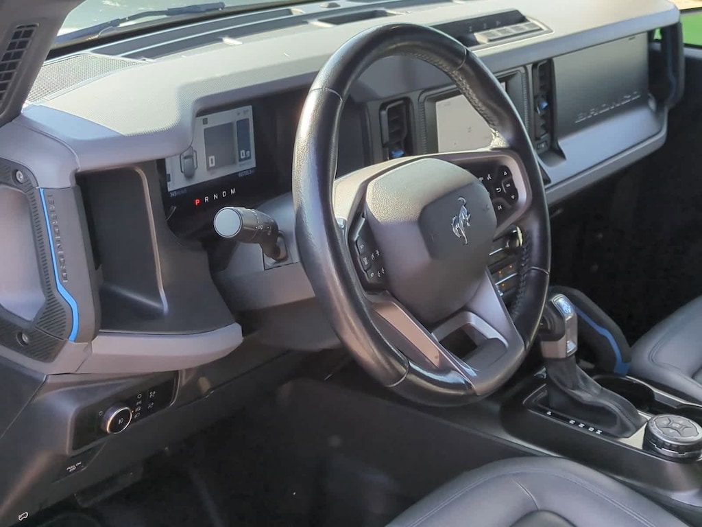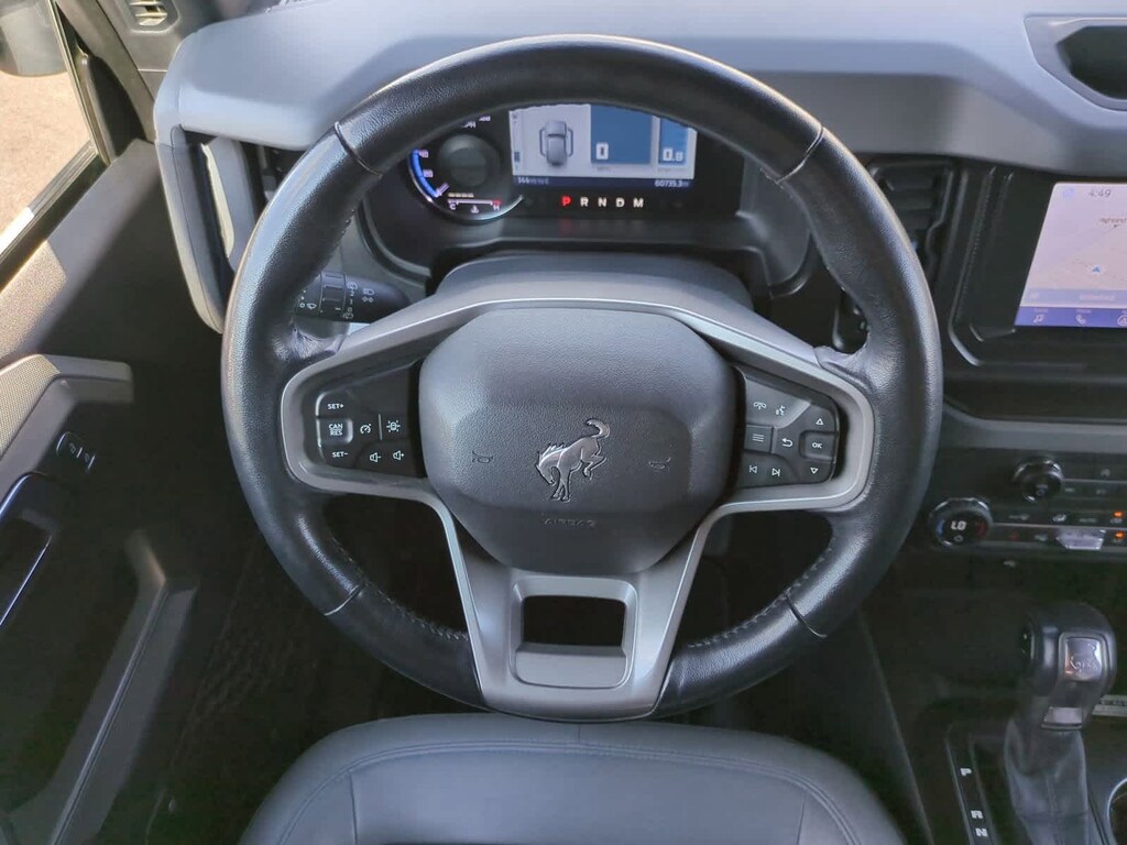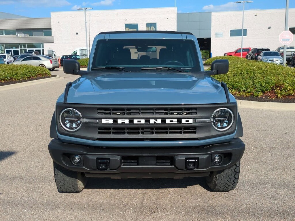 2023 Ford Bronco Black Diamond Azure Gray Metallic Tri-Coat 4WD 2-Door Intelligent Access w/Lock/Unlock, 4.46 Final Drive Ratio w/Rear Locking Differential, ABS brakes, Air Conditioning, AM/FM radio: SiriusXM with 360L, Ambient Footwell Lighting, Auto High-beam Headlights, Auto-Dimming Interior Rear-View Mirror, Compass, Connected Navigation, Dr & Pass Illuminated Sliding Visor Vanity Mirrors, Dual-Zone Electronic Automatic Temperature Control, Electronic Stability Control, Enhanced Voice Recognition, Equipment Group 322A Mid Package, Exterior Parking Camera Rear, Front Row Heated Seats, Fully automatic headlights, Heated door mirrors, Illuminated entry, Low tire pressure warning, Navigation system: Connected Navigation, Power Outlet - Back Side of Center Floor Console, Rear Parking Sensors, Remote keyless entry, Remote Start System, SiriusXM Radio w/360L, Steering wheel mounted audio controls, SYNC 4, Traction control, Wheels: 17 Black High Gloss-Painted Aluminum (64H).
