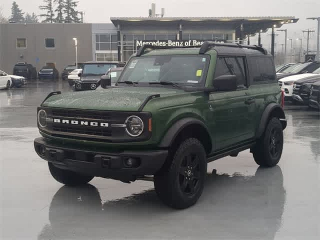 Mercedes-Benz of Beaverton is proud to present this stunning 2023 Ford Bronco Black Diamond as part of our hand-selected pre-owned lineup. Our trained technicians have completed a thorough multi-point safety and mechanical inspection. This gorgeous example is finished in the Eruption Green Metallic exterior paint and Black Onyx interior. Other dealer added factory options include: Equipment Group 321A Standard Package, 7 Speakers, Body Armor - Protective Moldings (DIO), Brake assist, Console Lock Box Safe Deposit (DIO), Convertible HardTop, Electronic Stability Control, Exterior Parking Camera Rear, Fixed Lid Cargo Area Storage (DIO), SYNC 4, Towing Capability, and Wheels: 17 Black Gloss-Painted Steel.