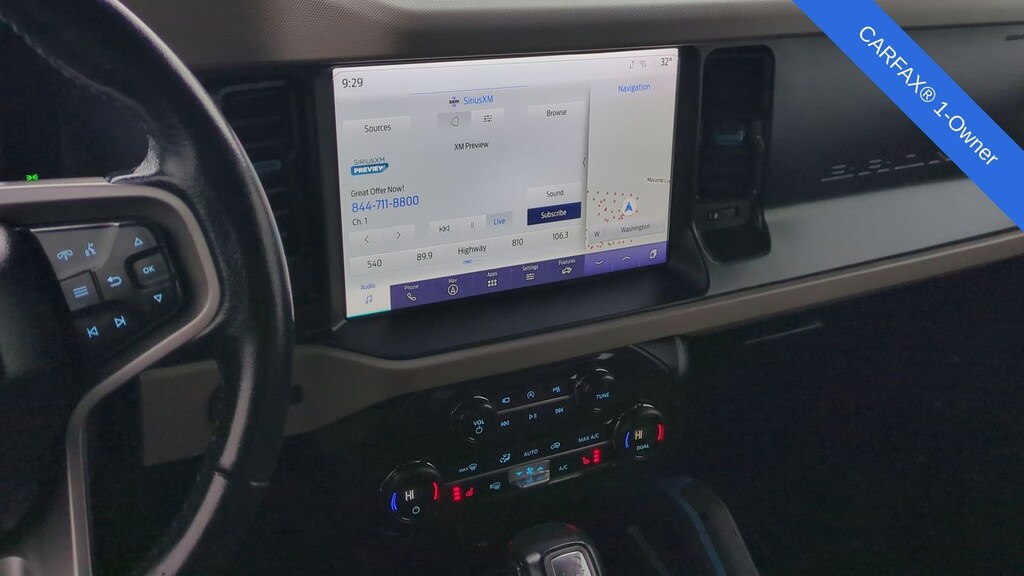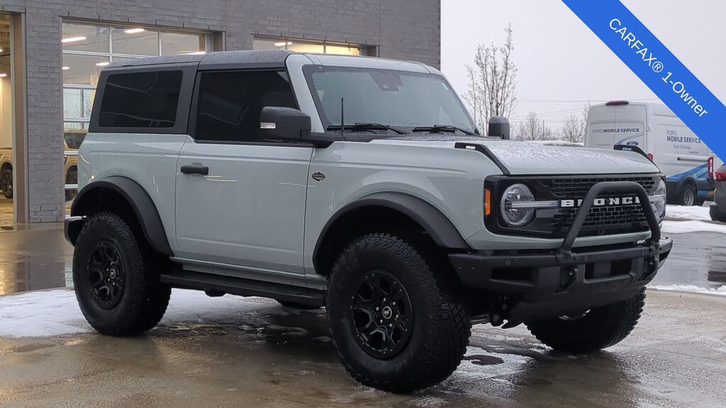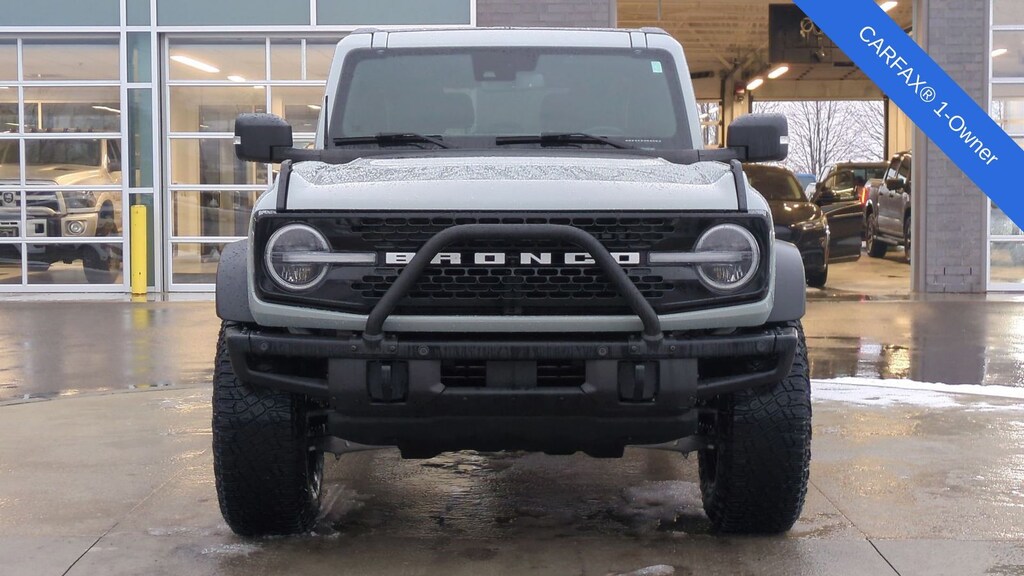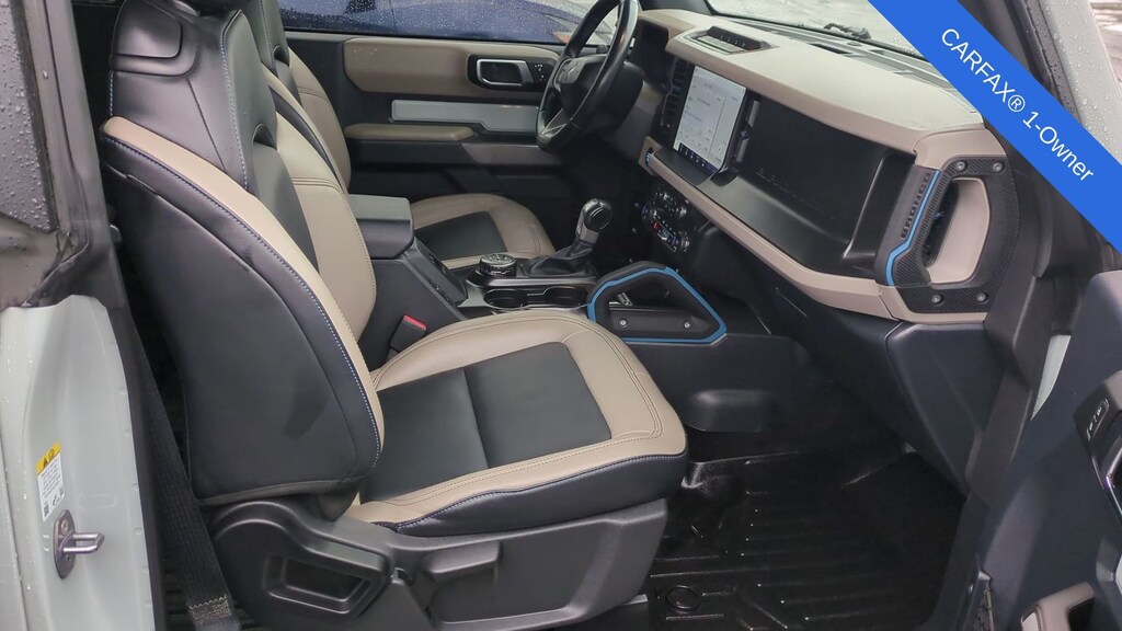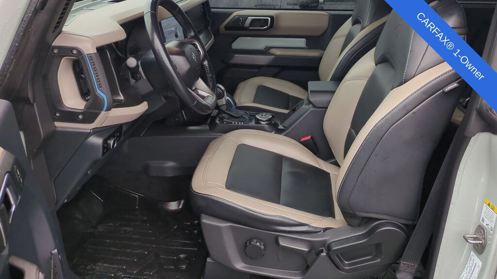 Clean CARFAX. 2023 Ford Bronco Wildtrak Is nicely equipped with Equipment Group 353A High Package (12" LCD Capacitive Touchscreen w/Swipe Capability, 360-Degree Camera, Additional Sound Deadening, Front Parking Sensors, Information on Demand Panel, and Sideview Mirrors), ABS brakes, Compass, Electronic Stability Control, Heated door mirrors, Illuminated entry, Low tire pressure warning, Navigation system: Connected Navigation, Remote keyless entry, Traction control, 4-Wheel Disc Brakes, 7 Speakers, Air Conditioning, AM/FM radio: SiriusXM with 360L, AM/FM Stereo, Auto High-beam Headlights, Brake assist, Convertible HardTop, Convertible roof lining, Delay-off headlights, Driver door bin, Driver vanity mirror, Dual front impact airbags, Dual front side impact airbags, Emergency communication system: 911 Assist, Exterior Parking Camera Rear, Front anti-roll bar, Front Bucket Seats, Front Center Armrest, Front reading lights, Front wheel independent suspension, Fully automatic headlights, Glass rear window, Integrated roll-over protection, Occupant sensing airbag, Outside temperature display, Overhead airbag, Overhead console, Panic alarm, Passenger door bin, Passenger vanity mirror, Power door mirrors, Power steering, Power windows, Radio data system, Rear window defroster, Rear window wiper, Security system, SiriusXM Radio w/360L, Speed control, Split folding rear seat, Steering wheel mounted audio controls, SYNC 4, Tachometer, Telescoping steering wheel, Tilt steering wheel, Trip computer, and Variably intermittent wipers.