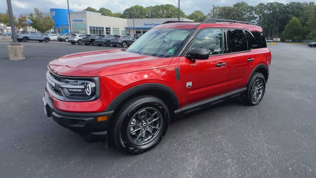 Bronco Sport Big Bend is nicely equipped with Equipment Group 200A, Bronco Sport Big Bend, 4D Sport Utility, 1.5L EcoBoost, 8-Speed Automatic, 4WD, Hot Pepper Red Tinted Clearcoat, Ebony w/Cloth Front Bucket Seats, Emergency communication system: SYNC 3 911 Assist, SYNC 3/Apple CarPlay/Android Auto, 3.80 Axle Ratio, 4-Wheel Disc Brakes, 4G LTE Wi-Fi Hotspot Credit, 6 Speakers, ABS brakes, Air Conditioning, Alloy wheels, AM/FM radio: SiriusXM, AM/FM Stereo, Auto High-beam Headlights, Automatic temperature control, Brake assist, Compass, Delay-off headlights, Driver door bin, Driver vanity mirror, Dual front impact airbags, Dual front side impact airbags, Electronic Stability Control, Four wheel independent suspension, Front anti-roll bar, Front Bucket Seats, Front Center Armrest, Front License Plate Bracket, Front reading lights, Fully automatic headlights, Heated door mirrors, Illuminated entry, Knee airbag, Low tire pressure warning, Occupant sensing airbag, Outside temperature display, Overhead airbag, Overhead console, Panic alarm, Passenger door bin, Passenger vanity mirror, Power door mirrors, Power steering, Power windows, Radio data system, Rear anti-roll bar, Rear reading lights, Rear seat center armrest, Rear window defroster, Rear window wiper, Remote keyless entry, Security system, SiriusXM, Speed control, Speed-sensing steering, Speed-Sensitive Wipers, Split folding rear seat, Steering wheel mounted audio controls, SYNC 3 Communications & Entertainment System, Tachometer, Telescoping steering wheel, Tilt steering wheel, Traction control, Trip computer, Unique Cloth Front Bucket Seats, Variably intermittent wipers, and Wheels: 17 Carbonized Gray-Painted Aluminum.