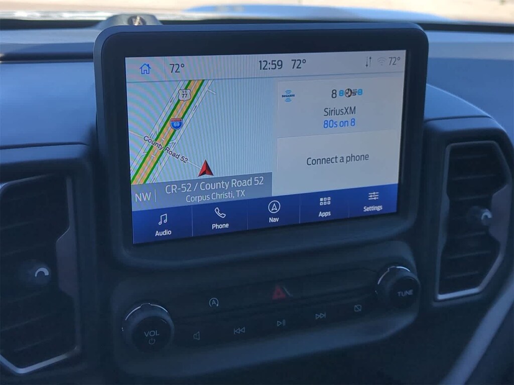 TECH PACKAGE Bang & Olufsen Sound System, 10 speakers and subwoofer, Universal Garage Door Opener (UGDO), Wireless Charging Pad, HD Radio, FORD CO-PILOT360 ASSIST+ Evasive Steering Assist, Voice-Activated Touchscreen Navigation System, pinch-to-zoom capability and SiriusXM Traffic and Travel Link w/a, SiriusXM Traffic and Travel Links services are not available in Alaska and Hawaii, After your trial period ends, SiriusXM audio and data services each require a subscription sold separately, or as a package, by SiriusXM Radio Inc, See SiriusXM customer agreement for complete terms at www.siriusxm.com, All fees and programming subject to change, Trial subscription available in Alaska and Hawaii, Intelligent Adaptive Cruise Control w/Stop & Go, lane centering and speed sign recognition, ENGINE: 1.5L ECOBOOST auto start-stop technology (STD). 2023 Ford Bronco Sport with Iconic Silver exterior and Navy Pier interior features a 3 Cylinder Engine with 181 HP at 6000 RPM*.