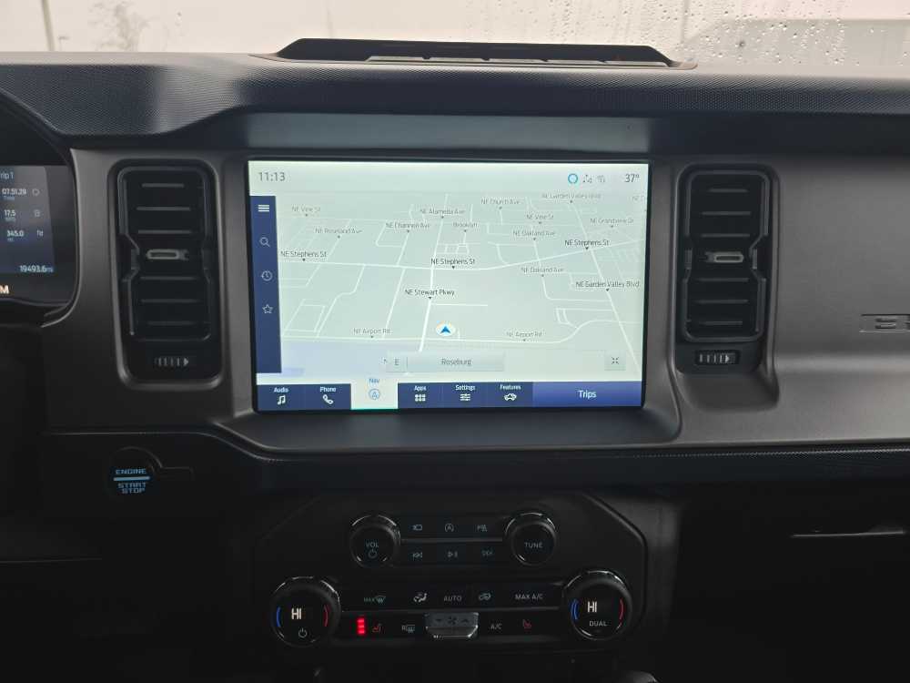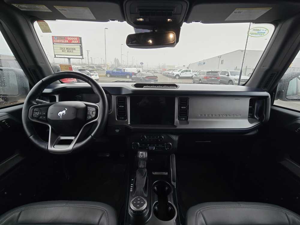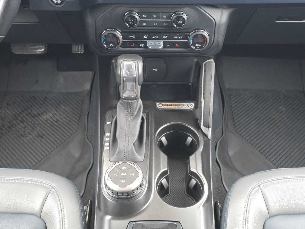 SASQUATCH PACKAGE Wheels: 17 Black High Gloss-Painted Aluminum, warm alloy beauty ring and beadlock capable wheels, High Clearance Fender Flares, 4.7 Final Drive Ratio, electronic-locking front and rear axle, High Clearance Suspension, Tires: LT315/70R17 Mud-Terrain, Position-Sensitive Bilstein Shock Absorbers, CARBONIZED GRAY MOLDED-IN-COLOR HARD TOP Rear-Window Defroster & Washer, Hard Top Sound Deadening Headliner, Front Row Top Panels Storage Bag, For on-vehicle storage, ENGINE: 2.7L ECOBOOST V6 electric brake boost, GVWR: 6,060 lbs, EQUIPMENT GROUP 313A HIGH PACKAGE 12 LCD Capacitive Touchscreen w/Swipe Capability, Additional Sound Deadening, Information on Demand Panel, Front Parking Sensors, 360-Degree Camera, Sideview Mirrors, LED approach lamps and LED spotlight, REMOVABLE HOOP STEP Replaces the standard powder coated tube step, FRONT & REAR FLOOR LINERS W/O CARPET FLOOR MATS Custom accessory, pre-installed, Deletes standard carpet front and rear floor mats, TRANSMISSION: 10-SPEED AUTOMATIC (STD). Ford Outer Banks with Shadow Black exterior and Dark Space Gray w/ Navy Pier interior features a V6 Cylinder Engine with 315 HP at 5500 RPM*.