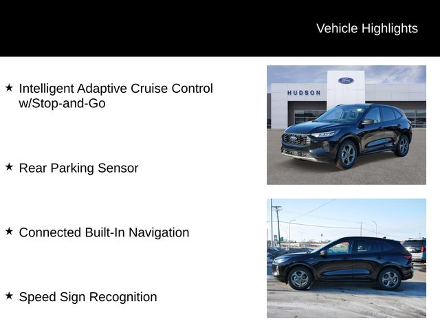Safety comes standard with Ford, including features like blind spot monitoring, lane-keeping assist, pre-collision assist, and a rearview camera. The 2023 Escape ST-Line blends sporty design, advanced features, and practical capability, making it a standout in the compact SUV segment. Stop by Hudson Ford today and schedule your test drive before it's gone!