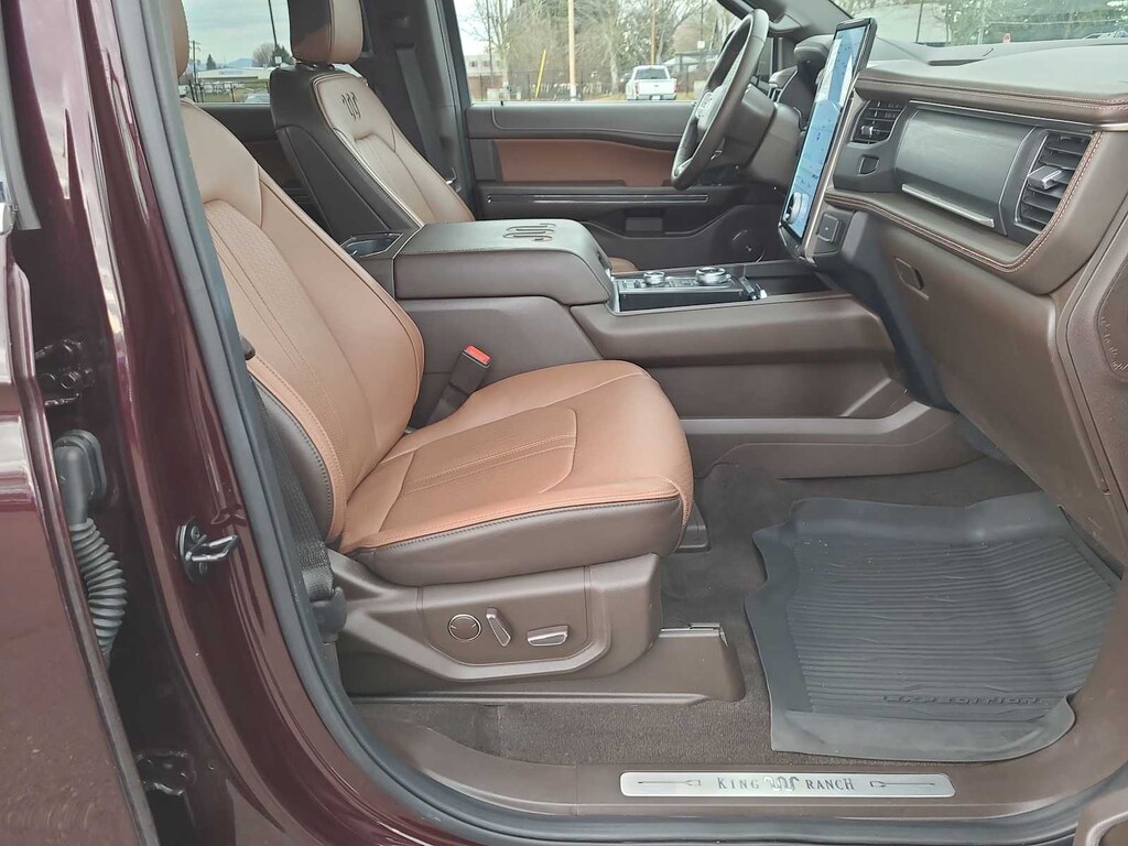 Leather Seats, Third Row Seat, Navigation, Sunroof, Panoramic Roof, Quad Bucket Seats, Power Liftgate, Rear Air, Heated Driver Seat, Heated Rear Seat, Cooled Driver Seat, Running Boards, Premium Sound System, Satellite Radio, iPod/MP3 Input. Ford King Ranch with Jewel Red Metallic Tinted Clearcoat exterior and Java interior features a V6 Cylinder Engine with 400 HP at 5000 RPM*.