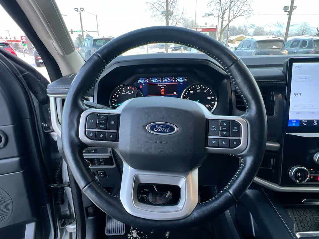 EQUIPMENT GROUP 202A HIGH PACKAGE Heated/Ventilated Front Seats, 110V/150W AC Power Outlet, Power-Adjustable Pedals w/Memory, Bright Chrome Plated Accent Platform Running Boards, Power Tilt/Telescopic Steering Wheel w/Memory, Ambient Lighting, Remote Start, Advanced Security Pack, SecuriLock Passive Anti-Theft System (PATS) and inclination/intrusion sensors, Wireless Charging Pad, Located in media hub, Power Liftgate, 2nd Row Power-Folding Captains Chairs, armrests and tip-and-slide, Accent Color Painted Rear Bumper, Heated Steering Wheel, Power-Folding Sideview Mirrors w/Autofold, power and heated glass, turn signal indicators, security approach lamps, driver/passenger side memory, drivers side auto-dimming and body-color caps, 3rd Row Vinyl Power-Folding Head Restraints, power recline, TRANSMISSION: 10-SPEED AUTOMATIC W/SELECTSHIFT (STD). Ford XLT with Iconic Silver exterior and Black Onyx interior features a V6 Cylinder Engine with 380 HP at 5000 RPM*.