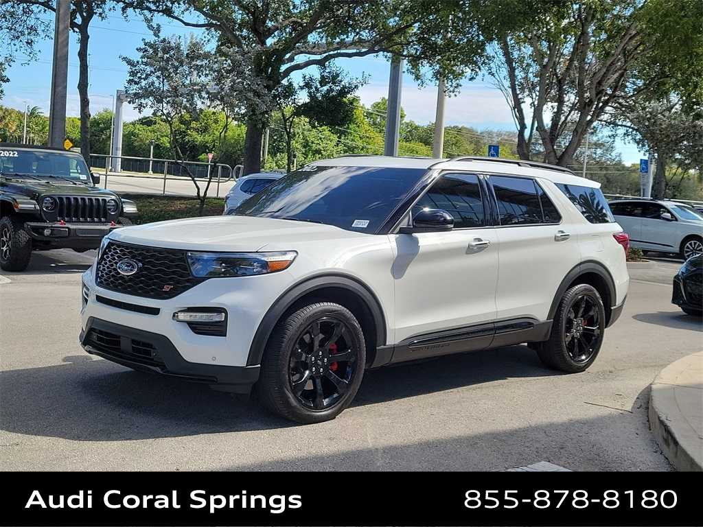 2023 Ford Explorer ST Explorer ST, 4WD, Star White Metallic Tri-Coat, Ebony w/Leather Heated/Ventilated Captains Chairs, 10.1 LCD Capacitive Portrait Touchscreen, 2 Additional Speakers, 3rd row seats: bench, Equipment Group 401A, Evasive Steering Assist, Ford Co-Pilot360 Assist+, High-Performance Front & Rear Brakes, Intelligent Adaptive Cruise Control, Leather Htd/Ventilated Sport Captains Chairs, Speed Sign Recognition, ST High Package, ST High-Performance Pack, ST Street Pack, Technology Package, Voice-Activated Touchscreen Navigation System.