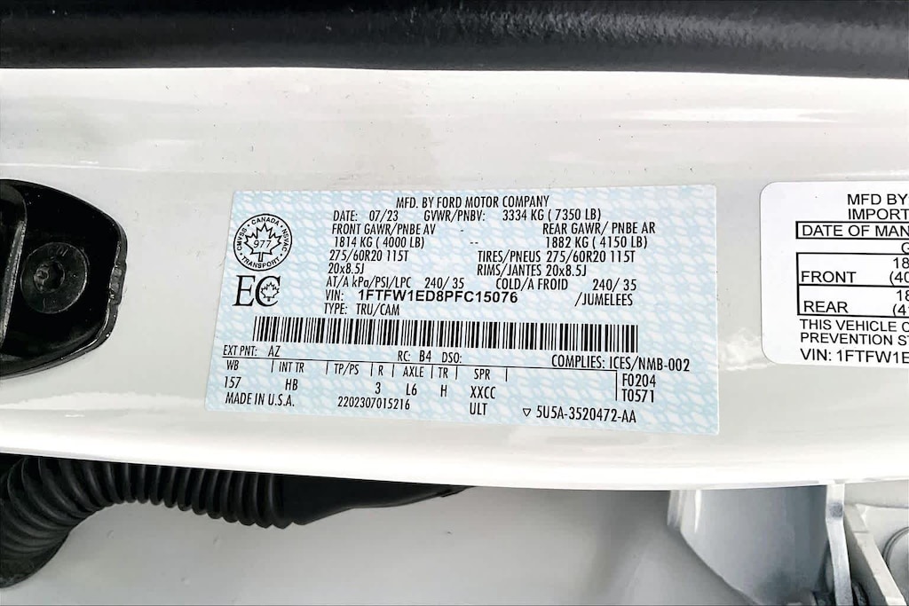 Lithia Chrysler Dodge Jeep Ram of Tri-Cities is pleased to offer this White 2023 Ford F-150 Lariat for purchase, this vehicle is well equipped with many features including:3.5L PowerBoost Full-Hybrid V6, 4WD, ABS brakes, Alloy wheels, Compass, Electronic Stability Control, Front dual zone A/C, Heated door mirrors, Heated front seats, Illuminated entry, Low tire pressure warning, Remote keyless entry, Traction control, 4-Wheel Disc Brakes, 8 Speakers, Adjustable pedals, Air Conditioning, AM/FM radio: SiriusXM with 360L, Auto High-beam Headlights, Auto-dimming door mirrors, Auto-dimming Rear-View mirror, Automatic temperature control, Brake assist, Bumpers: chrome, Chrome wheels, Class IV Trailer Hitch Receiver, Delay-off headlights, Driver door bin, Driver vanity mirror, Dual front impact airbags, Dual front side impact airbags, Emergency communication system: SYNC 4 911 Assist, Exterior Parking Camera Rear, Front anti-roll bar, Front Bucket Seats, Front Center Armrest, Front fog lights, Front reading lights, Front wheel independent suspension, Fully automatic headlights, Garage door transmitter, Heated steering wheel, Memory seat, Occupant sensing airbag, Outside temperature display, Overhead airbag, Overhead console, Panic alarm, Passenger door bin, Passenger vanity mirror, Pedal memory, Power door mirrors, Power driver seat, Power passenger seat, Power steering, Power windows, Radio data system, Radio: B&O Sound System by Bang & Olufsen, Rear reading lights, Rear seat center armrest, Rear step bumper, Rear window defroster, Security system, Speed control, Speed-sensing steering, Split folding rear seat, Steering wheel mounted audio controls, SYNC 4 w/Enhanced Voice Recognition, Tachometer, Telescoping steering wheel, Tilt steering wheel, Trip computer, Turn signal indicator mirrors, Variably intermittent wipers, Ventilated front seats, Voltmeter, and Wheels: 18 Chrome-Like PVD. 2023 Ford F-150 Lariat 3.5L PowerBoost Full-Hybrid V6, 4WD, ABS brakes, Alloy wheels, Compass, Electronic Stability Control, Front dual zone A/C, Heated door mirrors, Heated front seats, Illuminated entry, Low tire pressure warning, Remote keyless entry, Traction control.