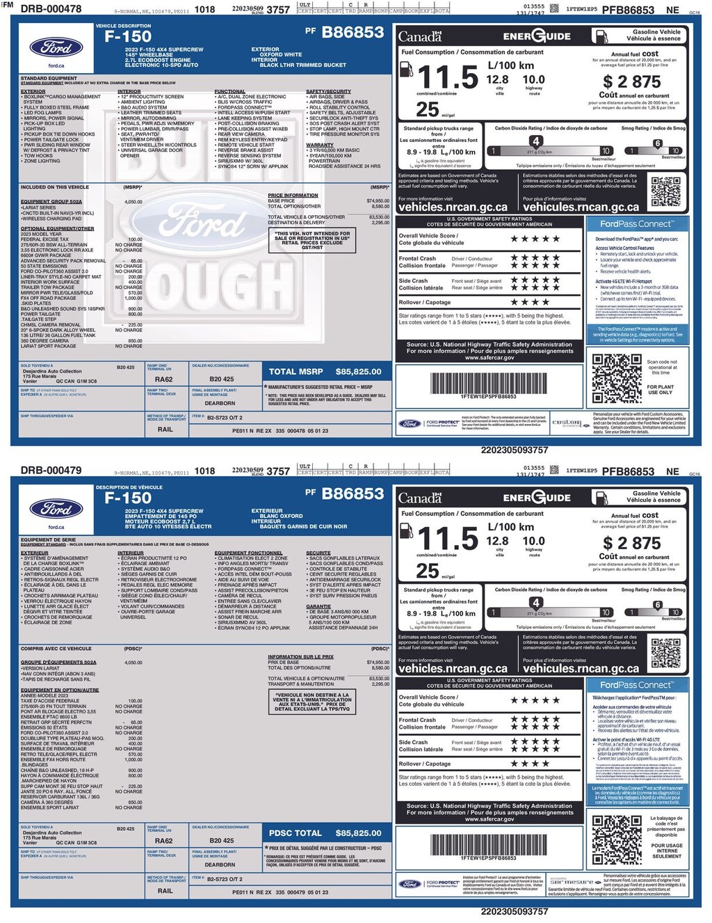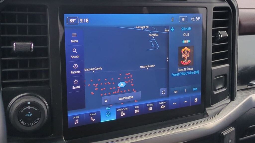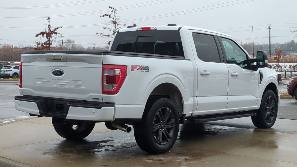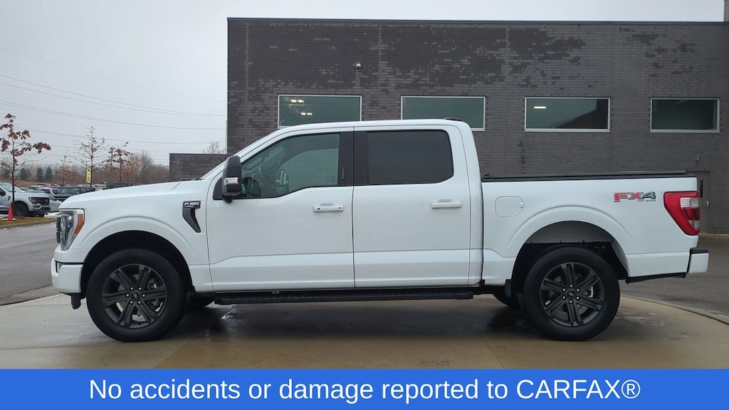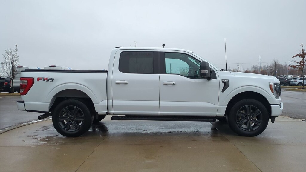 Clean CARFAX. 2023 Ford F-150 Lariat Is nicely equipped with Equipment Group 502A High (2nd Row Heated Seats, LED Projector w/Dynamic Bending Headlamps, Power Tilt/Telescoping Steering Column w/Memory, Rain-Sensing Wipers, Wheels: 20" Chrome-Like PVD, and Wireless Charging Pad), Ford Co-Pilot360 Assist 2.0, FX4 Off-Road Package (4x4 FX4 Off-Road Bodyside Decal, Hill Descent Control, Monotube Rear Shocks, Off-Road Tuned Front Shock Absorbers, and Rock Crawl Mode), Lariat Sport Appearance Package (Accent-Color Angular Step Bars, Body-Color Front & Rear Bumpers, Box Side Decals, Chrome Single-Tip Exhaust, and Dark 2-Bar & 1 Minor Bar Style Grille), GVWR: 6,600 lbs Payload Package, 4WD, ABS brakes, Alloy wheels, Compass, Electronic Stability Control, Front dual zone A/C, Heated door mirrors, Heated front seats, Illuminated entry, Low tire pressure warning, Remote keyless entry, Traction control, 3.55 Axle Ratio, 4-Wheel Disc Brakes, 8 Speakers, Adjustable pedals, Air Conditioning, AM/FM radio: SiriusXM with 360L, Auto High-beam Headlights, Auto-dimming door mirrors, Auto-dimming Rear-View mirror, Automatic temperature control, Brake assist, Bumpers: chrome, Chrome wheels, Class IV Trailer Hitch Receiver, Delay-off headlights, Driver door bin, Driver vanity mirror, Dual front impact airbags, Dual front side impact airbags, Emergency communication system: SYNC 4 911 Assist, Exterior Parking Camera Rear, Front anti-roll bar, Front Bucket Seats, Front Center Armrest, Front fog lights, Front reading lights, Front wheel independent suspension, Fully automatic headlights, Garage door transmitter, Heated steering wheel, Memory seat, Navigation system: Connected Navigation, Occupant sensing airbag, Outside temperature display, Overhead airbag, Overhead console, Panic alarm, Passenger door bin, Passenger vanity mirror, Pedal memory, Power door mirrors, Power driver seat, Power passenger seat, Power steering, Power windows, Radio data system, Radio: B&O Sound System by Bang & Olufsen, Rear reading lights, Rear seat center armrest, Rear step bumper, Rear window defroster, Security system, Speed control, Speed-sensing steering, Split folding rear seat, Steering wheel mounted audio controls, SYNC 4 w/Enhanced Voice Recognition, Tachometer, Telescoping steering wheel, Tilt steering wheel, Trip computer, Turn signal indicator mirrors, Variably intermittent wipers, Ventilated front seats, Voltmeter, and Wheels: 18" Chrome-Like PVD.
