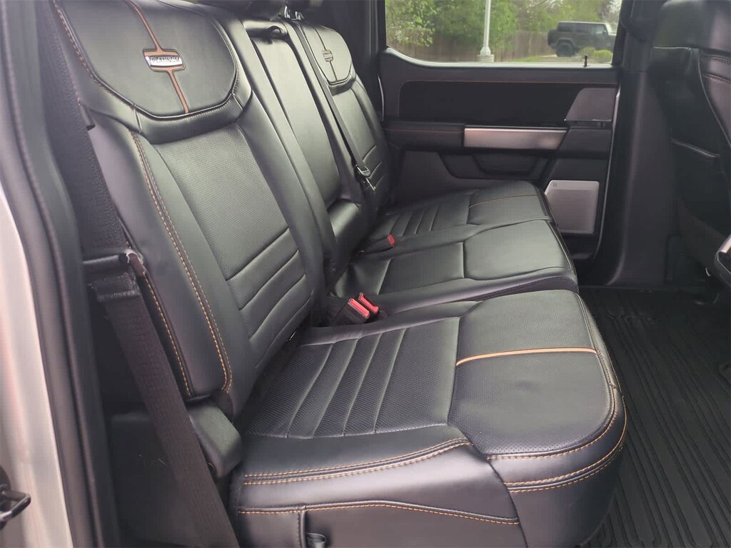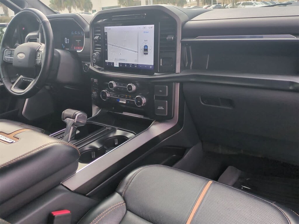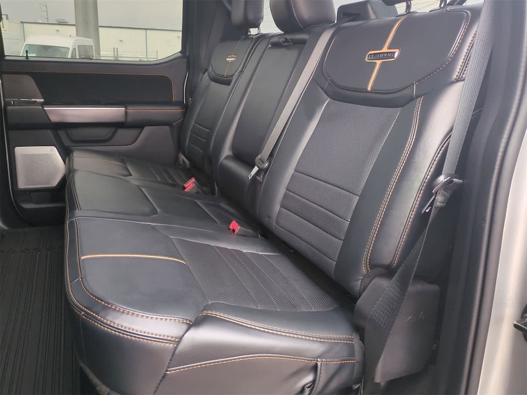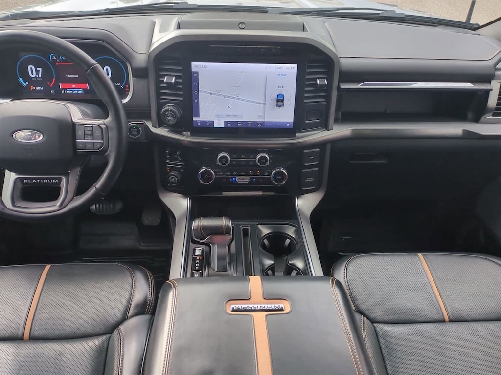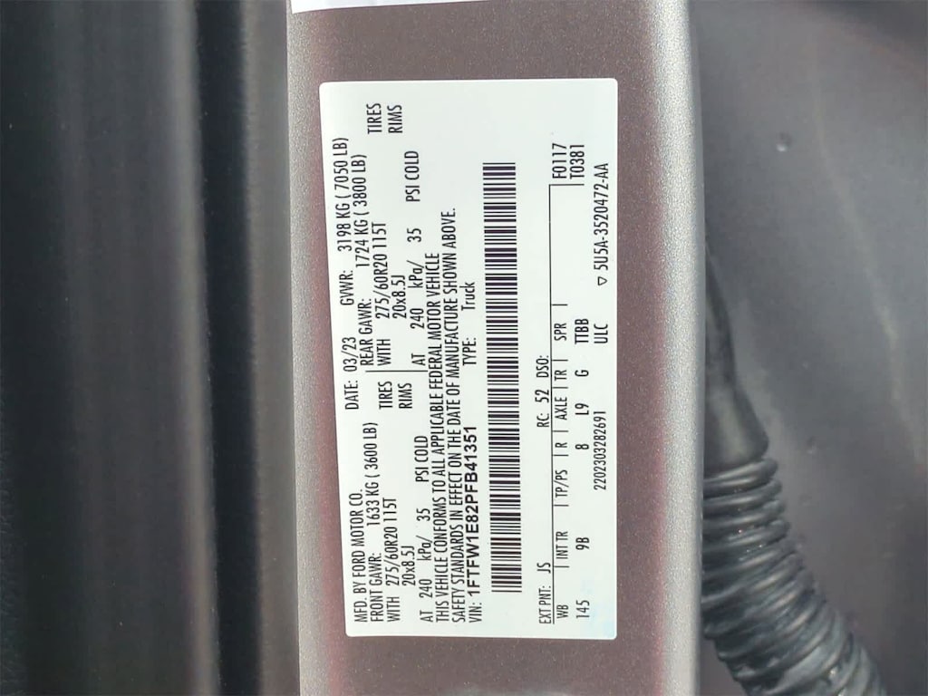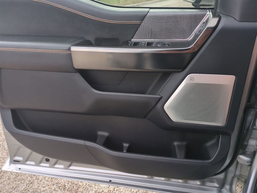 EQUIPMENT GROUP 701A HIGH Ford BlueCruise 1.0, forward sensing system, Active Park Assist 2.0, 360 Degree Camera, trailer reverse guidance, Radio: B&O Unleashed Sound System by Bang & Olufsen, HD Radio and 18 speakers including subwoofer, Pro Trailer Backup Assist & Pro Trailer Hitch Assist, Bed Utility Package, BoxLink, 4 premium locking cleats, LED Box Lighting, Tailgate Step w/Tailgate Work Surface, Power Tailgate, TWIN PANEL MOONROOF, ENGINE: 3.5L V6 ECOBOOST, TRANSMISSION: ELECTRONIC 10-SPEED AUTOMATIC selectable drive modes: normal, ECO, sport, tow/haul, slippery, deep snow/sand and mud/rut (STD). 2023 Ford F-150 with Iconic Silver exterior and Black interior features a V6 Cylinder Engine with 400 HP at 6000 RPM*.
