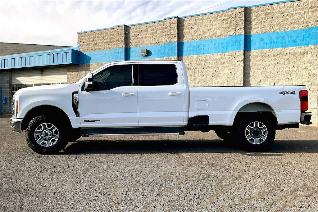 ENGINE: 6.7L POWER STROKE V8 TURBO DIESEL B20 High output, manual push-button engine-exhaust braking, Operator Commanded Regeneration (OCR) and intelligent oil-life monitor, 48 Gallon Fuel Tank, GVWR: 12,400 lb Payload Package, 3.31 Axle Ratio, Dual 68 AH/65 AGM Batteries, 6 ANGULAR BRIGHT ANODIZED STEP BARS, ELECTRONIC-LOCKING W/3.55 AXLE RATIO, TRANSMISSION: TORQSHIFT 10-SPEED AUTOMATIC SelectShift and selectable drive modes: normal, eco, slippery roads, tow/haul and off-road (STD). Ford LARIAT with Oxford White exterior and Black Onyx interior features a 8 Cylinder Engine with 500 HP at 2600 RPM*.