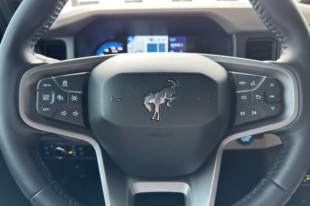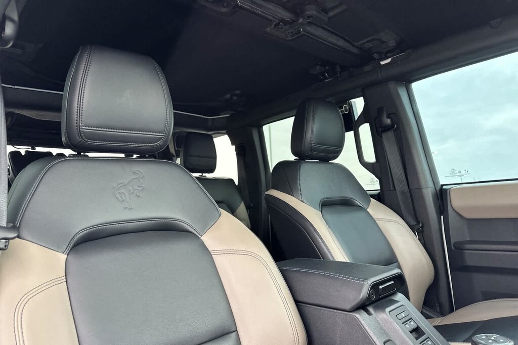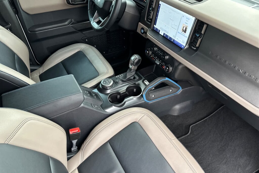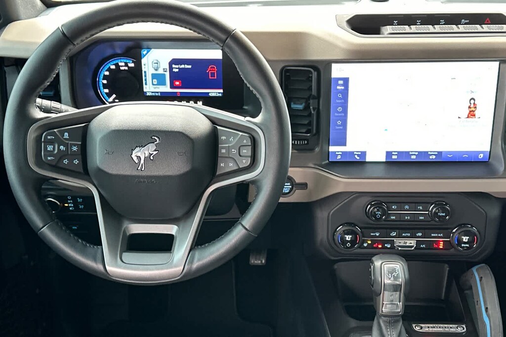 EQUIPMENT GROUP 354A HIGH/LUX PACKAGE Evasive Steering Assist, Heated Steering Wheel, Adaptive Cruise Control, Additional Sound Deadening, Information on Demand Panel, Wireless Charging Pad, Radio: B&O Sound System by Bang & Olufsen, 10 Speakers w/Subwoofer, Front Parking Sensors, 360-Degree Camera, Universal Garage Door Opener, Sideview Mirrors, LED approach lamps and LED spotlight, CARBONIZED GRAY MOLDED-IN-COLOR HARD TOP Rear-Window Defroster & Washer, Hard Top Sound Deadening Headliner, Front Row Top Panels Storage Bag, For on-vehicle storage, TRANSMISSION: 10-SPEED AUTOMATIC trail control, trail turn assist and trail one-pedal driving (STD). 2024 Ford Bronco with Oxford White exterior and Medium Sandstone w/ Black Onyx interior features a V6 Cylinder Engine with 315 HP at 5500 RPM*.