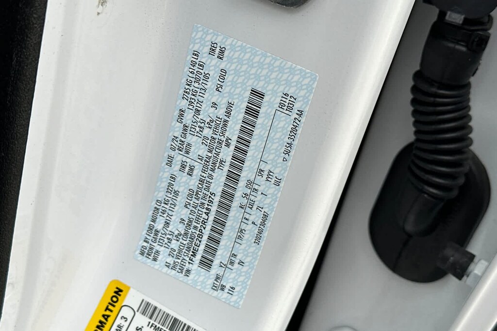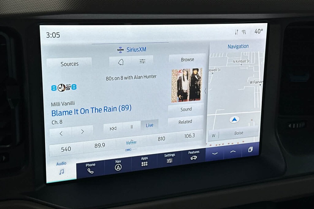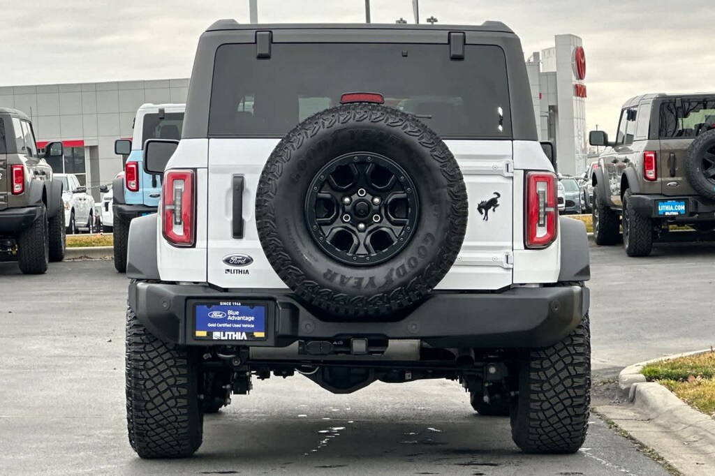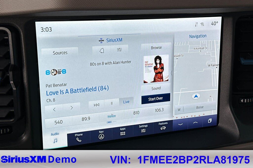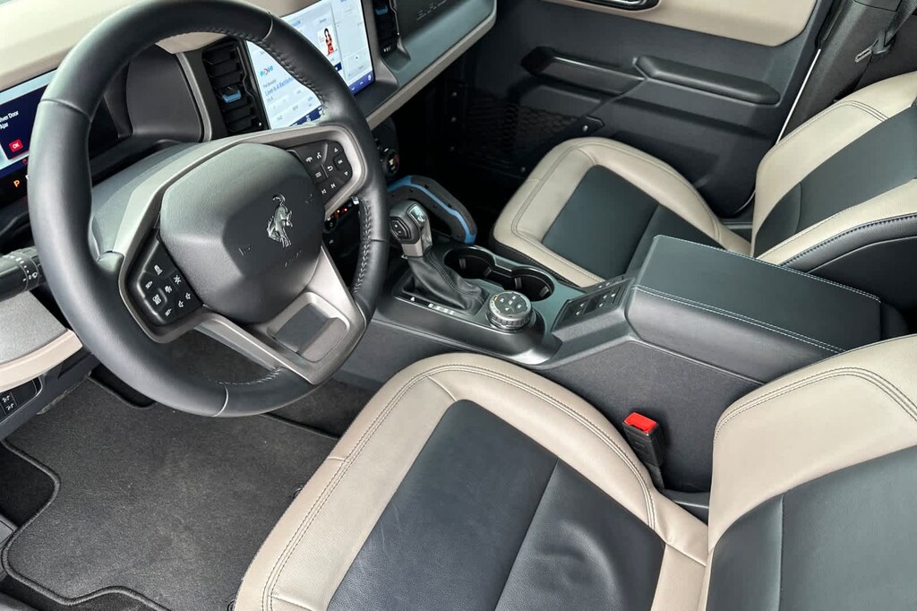 EQUIPMENT GROUP 354A HIGH/LUX PACKAGE Evasive Steering Assist, Heated Steering Wheel, Adaptive Cruise Control, Additional Sound Deadening, Information on Demand Panel, Wireless Charging Pad, Radio: B&O Sound System by Bang & Olufsen, 10 Speakers w/Subwoofer, Front Parking Sensors, 360-Degree Camera, Universal Garage Door Opener, Sideview Mirrors, LED approach lamps and LED spotlight, CARBONIZED GRAY MOLDED-IN-COLOR HARD TOP Rear-Window Defroster & Washer, Hard Top Sound Deadening Headliner, Front Row Top Panels Storage Bag, For on-vehicle storage, TRANSMISSION: 10-SPEED AUTOMATIC trail control, trail turn assist and trail one-pedal driving (STD). 2024 Ford Bronco with Oxford White exterior and Medium Sandstone w/ Black Onyx interior features a V6 Cylinder Engine with 315 HP at 5500 RPM*.